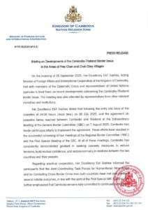 ក្រសួងការបរទសកម្ពុជា ចេញសេចក្តីប្រកាស ៖ ការធ្វើបទបង្ហាញស្តីពីការវិវត្តន៍នៃបញ្ហាព្រំដែនរវាងកម្ពុជា-ថៃ នៅភូមិព្រៃចាន់ និងភូមិជោគជ័យ