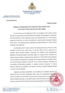 -Cambodia’s Ministry of Foreign Affairs and International Cooperation, September 25, 2025