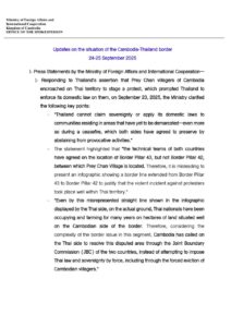 បច្ចុប្បន្នភាពស្ដីពីស្ថានការណ៍ព្រំដែនកម្ពុជា-ថៃ ថ្ងៃទី ២៤-២៥ ខែកញ្ញា ឆ្នាំ២០២៥ Updates on the situation along the Cambodia-Thailand Border 24-25 September 2025