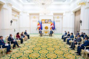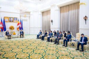 (ភ្នំពេញ)៖ សម្តេចបវរធិបតី ហ៊ុន ម៉ាណែត នាយករដ្ឋមន្ត្រីនៃកម្ពុជា នៅរសៀលថ្ងៃសុក្រ ទី២៦ កញ្ញា ២០២៥ បានអនុញ្ញាតឱ្យគណៈប្រតិភូសភាសហរដ្ឋអាមេរិក ដឹកនាំដោយលោក Adam Smith សមាជិកសភាប្រចាំរដ្ឋ Washington, លោក Michael Baumgartner សមាជិកសភាប្រចាំរដ្ឋ Washinton, និងលោកស្រី Chrissy Houlahan សមាជិកសភាប្រចាំរដ្ឋ Pennsylvania ចូលជួបសម្តែងការគួរសម និងពិភាក្សាការងារ នៅវិមានសន្តិភាព៕