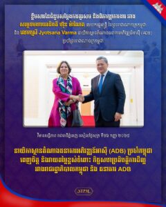 នាយិកាស្ថានតំណាងធនាគារអភិវឌ្ឍន៍អាស៊ី (ADB) ប្រចាំកម្ពុជា ពេញចិត្ត និងវាយតម្លៃខ្ពស់ចំពោះកិច្ចសហប្រតិបត្តិការដ៏ល្អរវាងរាជរដ្ឋាភិបាលកម្ពុជា និង ធនាគារ ADB