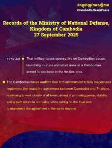 កងទ័ពថៃ បានបាញ់ប្រហារ មកទីតាំងកងកម្លាំងកម្ពុជានៅម៉ោង ១១:៥២នាទីព្រឹកថ្ងៃ២៧ កញ្ញា ២០២៥ !!!