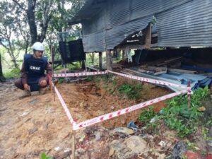 ដូចប្រសាសន៍របស់សម្តេចតេជោផ្តល់អនុសាសន៍ឱ្យរក្សាទុកភស្តុតាងរណ្តៅនេះមានសារសំខាន់ណាស់! ករណីនៅថ្មដា កម្លាំងអង្គភាពCMACបានសហការជាមួយកងទ័ពចុះហ៊ុំពន្ធ័រណ្តៅគ្រាប់ និងបានកំណត់អត្តសញ្ញាណគ្រប់ផ្លោងប្រភេទ១០៥មម ចំនួន៦រណ្តៅដែលផ្ទុះទាំងអស់ (លេី២១គ្រាប់ដែលបានបាញ់) ដោយវិភាគអំបែងគ្រាប់១០៥មមនោះ អ្នកបច្ចេកទេសបានដឹងថា មានគ្រាប់ផ្លោង១០៥មមចំនួន៤គ្រាប់ជាគ្រាប់ផ្លោងមានផ្ទុកផ្សែងពុលWP និង២រណ្តៅគ្រាប់ជាគ្រាប់ជះអំបែង។ តាមរយ:ការវិភាគនេះ អាចដឹងច្បាស់ជាគ្រាប់ផ្លោងផលិតនៅប្រទេសណា ហេីយអ្នកណាជាអ្នកប្រេីប្រាស់គ្រាប់នោះយ៉ាងច្បាស់លាស់!។