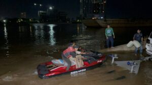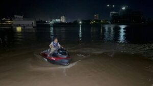 ភ្នំពេញៈ បុរសម្នាក់បន្ទាប់ ពី ជិះ ម៉ូតូ ទឹក ម៉ាក Kawasaki SX-R នៅ ជិតស្ពាន កោះ នរា ហេីយ បាន ធ្លាក់ ចូល ទឹក ទន្លេ លិច បាត់ តាំង ពី ម៉ោង ៤ជាង រសៀល រហូត ដល់ ពេល នេះ រក មិន ទាន់ ឃេីញ នៅ ឡេីយ នោះទេ ហេតុការណ៍ នេះ បាន បង្ក ឲ្យ មាន ការ ភ្ញាក់ផ្អើល កាលពី យប់ ថ្ងៃ ទី ២៧ ខែ កញ្ញា ឆ្នាំ ២០២៥ ស្ថិត ច្រាំង ទន្លេ ជិះ ស្ពាន កោះនរា សង្កាត់ ទន្លេ បាសាក់ ខណ្ឌ ចំការមន រាជធានី ភ្នំពេញ ។