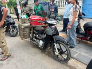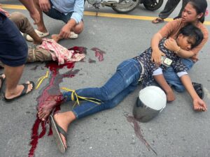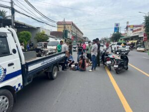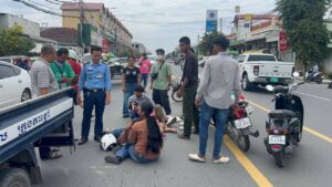 គ្រោះថ្នាក់ចរាចរណ៍ រវាងម៉ូតូ និង ម៉ូតូ បណ្តាលអោយរងរបួសអ្នកបើកម៉ូតូធ្ងន់២នាក់ លើកំណាត់ផ្លូវ២១ ចំណុចភូមិព្រែកសំរោង៣ សង្កាត់តាខ្មៅ