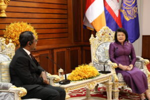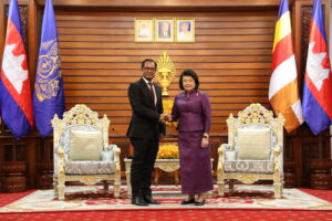 សម្តេចមហារដ្ឋសភាធិការធិបតី ឃួន សុដារី បានសម្តែងនូវការស្វាគមន៍ និងអបអរសាទរចំពោះឯកឧត្តម ម៉ាកូស ដូស រ៉េហ្ស ដា ខូលតា ដែលត្រូវបានតែងតាំងឯកអគ្គរដ្ឋទូតរបស់ប្រទេសទីម័រខាងកើតប្រចាំនៅកម្ពុជា។ សម្តេចបានគូសបញ្ជាក់ថា កម្ពុជា និងទីម័រខាងកើត គឺជាមិត្តដ៏ជិតស្និទ្ធ និងជាដៃគូប្រកបដោយទំនុកចិត្ត។ ប្រទេសទំាងពីរមានបទពិសោធន៍ស្រដៀងគ្នា និងធ្លាប់ជាប្រទេសដែលរងគ្រោះដោយសារសង្គ្រាម ដូចគ្នា។ នៅឆ្នាំ២០២២ ក្នុងខណៈពេលដែលកម្ពុជាធ្វើជាប្រធានអាស៊ាន ដែលកាលនោះមានសម្តេចតេជោ ហ៊ុន សែន ជានាយករដ្ឋមន្រ្តី កម្ពុជាបានដើរតួនាទីយ៉ាងសំខាន់ ដោយបានអនុម័តនូវកិច្ចព្រមព្រៀងជាគោលការណ៍ សម្រាប់ការចូលជាសមាជិកភាពពេញលេញរបស់ទីម័រខាងកើតនៅក្នុងអាស៊ាន។ សម្តេចប្រធានរដ្ឋសភា បានគូសបញ្ជាក់ថា កម្ពុជាជាប្រទេសតូច ស្រឡាញ់សន្តិភាព ផ្តោតការយកចិត្តទុកដាក់ លើការអភិវឌ្ឍប្រទេសជាតិលើកកម្ពស់ជីវភាពពលរដ្ឋជាសំខាន់។ ទាក់ទងនឹងជម្លោះឈ្លានពានរបស់ថៃមកលើអធិបតេយ្យភាពរបស់កម្ពុជា សម្តេចរដ្ឋសភាធិបតី បានគូសបញ្ជាក់ថា កម្ពុជាបានអនុវត្តមធ្យោបាយនៃដំណោះស្រាយដោយសន្តិវិធី តាមរយៈការចរចាទ្វេភាគី ដោយផ្អែកលើយន្តការដែល មានស្រាប់ និងជាពិសេសការគោរពច្បាប់អន្តរជាតិ។ ការអនុវត្តពេញលេញ និងប្រកបដោយប្រសិទ្ធភាពនៃកិច្ចព្រមព្រៀងឈប់បាញ់រវាងប្រជាជាតិទាំងពីរគឺចាំបាច់ក្នុងការឆ្ពោះទៅរកការស្ដារឡើងវិញនូវសន្តិភាព និងប្រក្រតីភាព។ កម្ពុជាជំរុញឱ្យមានការដាក់ពង្រាយក្រុមសង្កេតការណ៍អាស៊ានឱ្យបានឆាប់រហ័ស។