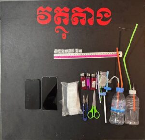 ជនសង្ស័យទាំង ២នាក់មានឈ្មោះ សឹង កក្កដា ហៅដា ភេទប្រុស អាយុ១៨ឆ្នាំនិង ឈឿន សុភក្ត្រា ហៅភ័ក្ត ភេទប្រុស អាយុ២០ឆ្នាំ។ ជនសង្ស័យទាំងពីរនាក់នេះមានសារធាតុញៀនក្នុងខ្លួនវិជ្ជមាន (+)។ វត្ថុតាងដែលដកហូតបានរួមមាន ម្សៅក្រាមសថ្លាសង្ស័យជាសារធាតុញៀន (ម៉ាទឹកកក) ចំនួន ៨កញ្ចប់តូច ទម្ងន់ ០,៨០ក្រាម, ទូរសព្ទដៃ ២គ្រឿងម៉ាក iPhoneX ពណ៌សនិង Vivo ពណ៌ទឹកសមុទ្រ រួមទាំង ឧបករណ៍ប្រើប្រាស់ និងថង់វេចខ្ចប់គ្រឿងញៀនមួយ ចំនួន។