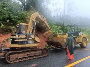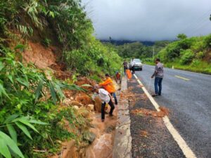 កំណាត់ផ្លូវជាតិលេខ៥៥ ត្រង់ចំណុចភ្នំ១៥០០បាក់ដីគ្របលើផ្លូវ ដោយសារភ្លៀងជាប់ៗគ្នាខ្លាំងពេក