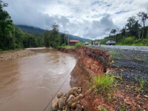 អ្នកនាំពាក្យក្រសួងសាធារណការ និងដឹកជញ្ជូន ឯកឧត្តម ផន រឹម បានឲ្យដឹងថា ដោយសារភ្លៀងធ្លាក់ខ្លាំងជាប់ៗគ្នាប៉ុន្មានថ្ងៃនេះ បណ្តាលឲ្យទឹកហូរបុកច្រោះដាច់តួផ្លូវ កំណាត់ផ្លូវជាតិលេខ៥៥ នៅPK 152+850- PK 152+900 ប្រវែង៥០ម៉ែត្រ ទទឹងជាង១ម៉ែត្រ (នៅសល់ជាង១ម៉ែត្រទៀតដល់ចិញ្ចើមផ្លូវ) និងហូរបាក់ដីគ្របលើលូតាមបណ្តោយផ្លូវថ្នល់ នៅត្រង់ចំណុចផ្លូវអន្ទង់អាំង ភ្នំ១៥០០ ស្រុកវាលវែង ខេត្តពោធិ៍សាត់។