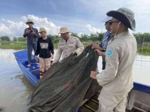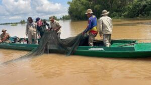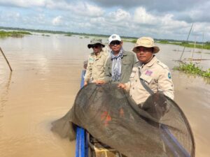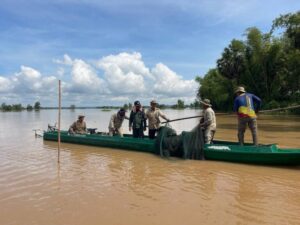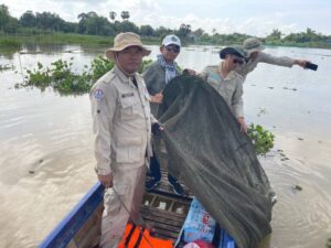 កំពង់ចាម៖ នៅថ្ងៃទី០១ ខែតុលា ឆ្នាំ២០២៥ ឯកឧត្តម ទឹម បូរក្ស អនុរដ្ឋលេខាធិការក្រសួងកសិកម្ម រុក្ខាប្រមាញ់ និងនេសាទ តាមការណែនាំពីឯកឧត្តមរដ្ឋលេខាធិការ ហាស់ សារ៉េត បានដឹកនាំកម្លាំងខណ្ឌរដ្ឋបាលជលផលកំពង់ចាម អធិការដ្ឋានរដ្ឋបាលជលផលមេគង្គ សហការជាមួយអាជ្ញាធរស្រុកកំពង់សៀម អាជ្ញាធរឃុំកៀនជ្រៃ ប៉ុស្តិ៍នគរបាលរដ្ឋបាលកៀនជ្រៃ និងសហគមន៍នេសាទដំរីឆ្លង បានចុះប្រតិបត្តិការបង្ក្រាបបទល្មើសជលផល នៅស្រុកកំពង់សៀម ខេត្តកំពង់ចាម។
