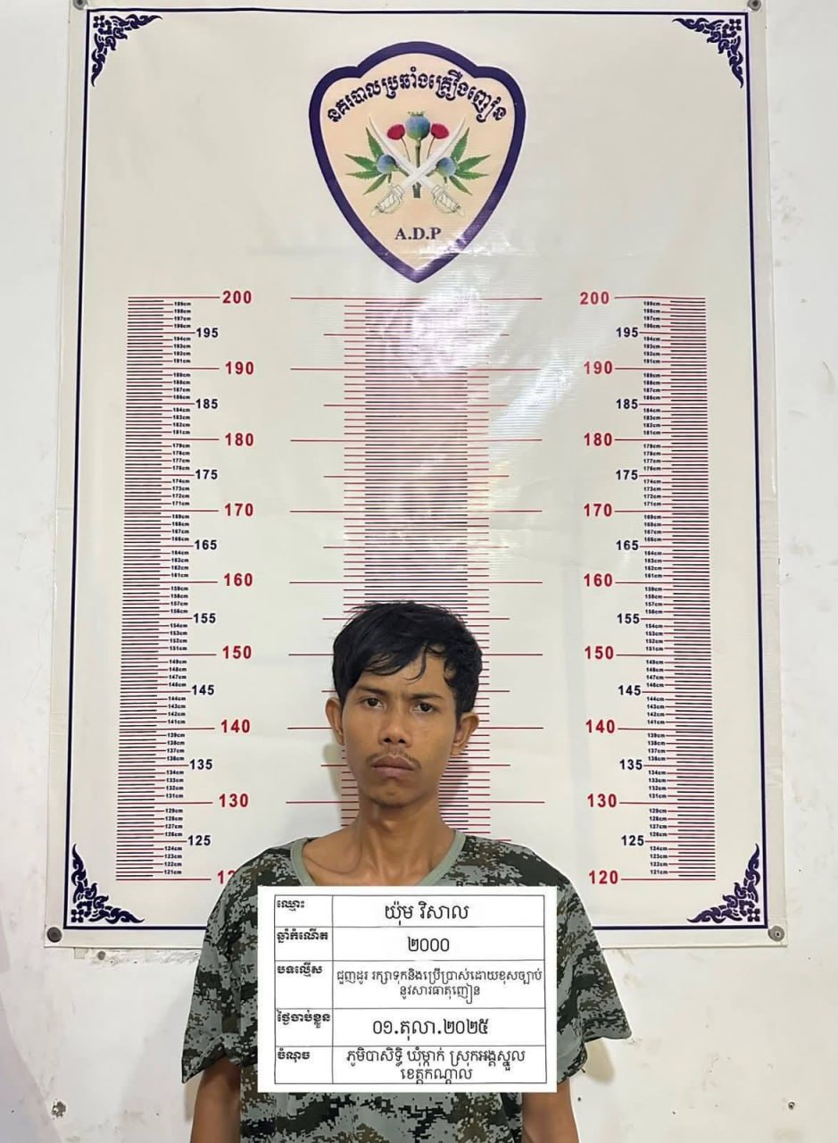 ២-ឈ្មោះ យ៉ុម វិសាល ភេទប្រុស អាយុ២៥ឆ្នាំ ជនជាតិខ្មែរ មុខរបរមិនពិតប្រាកដ រស់នៅភូមិត្រពាំងក្រសាំង ឃុំម្កាក់ ស្រុកអង្គស្នួល ខេត្តកណ្ដាល (ប្រេីប្រាស់ច្រើនលេីកប្រហែល៥ឆ្នាំ)។