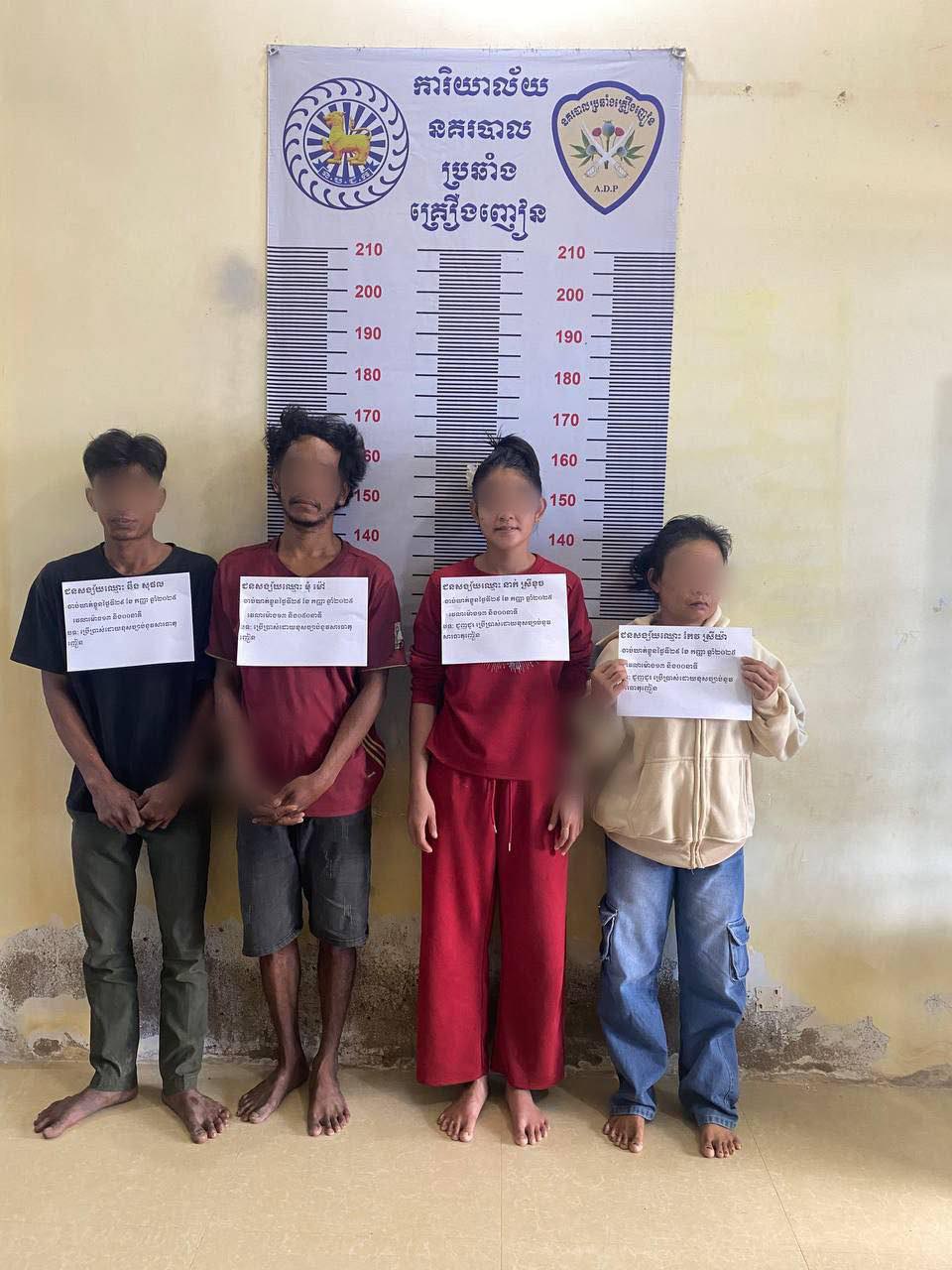 ចាប់ខ្លួនជនសង្ស័យ ៤នាក់(ស្រី២នាក់) (២ទីតាំងផ្សេងគ្នា) ស្ថិតនៅចំណុច ស្រុកកោះអណ្តែត និងស្រុកគីរីវង្ស