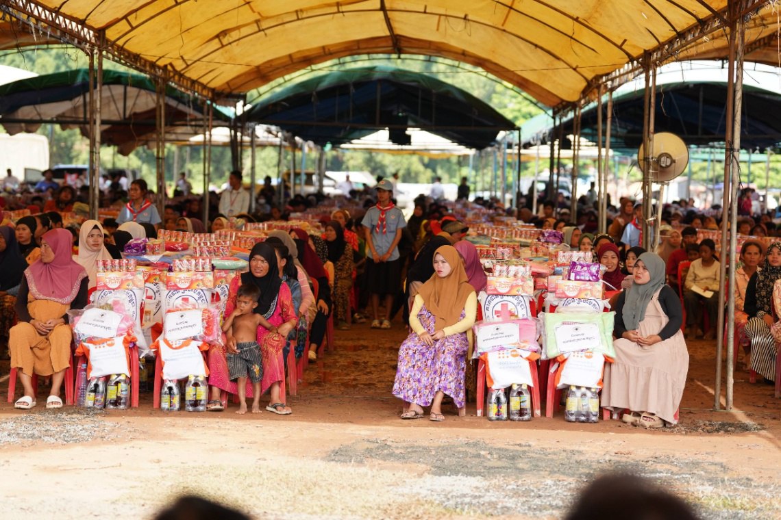 បន្ទាប់ពីបានទទួលព្រះរាជទ្រព្យដ៏ឧត្តុង្គឧត្តមចំនួន ២ម៉ឺនដុល្លារអាម៉េរិក របស់សម្តេចព្រះមហាក្សត្រី ព្រះវររាជមាតាជាតិខ្មែរ ព្រះប្រធានកិត្តិយសកាកបាទក្រហមកម្ពុជា ជាទីសក្ការៈដ៏ខ្ពង់ខ្ពស់បំផុត ភ្លាមៗ នៅព្រឹកថ្ងៃអាទិត្យទី៥ ខែតុលា ឆ្នាំ២០២៥នេះ សម្តេចកិត្តិព្រឹទ្ធបណ្ឌិត ប៊ុន រ៉ានី ហ៊ុនសែន ប្រធានកាកបាទក្រហមកម្ពុជា បានចាត់ចែងព្រះរាជទ្រព្យដ៏ឧត្តុង្គឧត្តមនេះទិញស្បៀង និងសម្ភារ យកមកចែកជូនប្រជានុរាស្ត្រងាយរងគ្រោះបំផុត ដែលបានទទួលរងគ្រោះដោយទឹកជំនន់ចំនួន ១.៨០០គ្រួសារ មកពីភូមិចំនួន១៤ ក្នុងឃុំចំនួន៣ នៃស្រុកត្បូងឃ្មុំ ក្នុងនោះ ឃុំបឹងព្រួលចំនួន ២០០គ្រួសារ, ឃុំជីរោទិ៍ទី១ ចំនួន ៨២៨គ្រួសារ និងឃុំទន្លេបិទចំនួន ៧៧២គ្រួសារ ហើយដែលពិធីជួបសំណេះសំណាល និងចែកអំណោយនេះធ្វើឡើងនៅទីទួលសុវត្ថិភាពឧកញ៉ា វ័ន ប៊ុនថៃ ស្ថិតក្នុងភូមិទន្លេបិទលើ ឃុំទន្លេបិទ ស្រុកត្បូងឃ្មុំ ខេត្តត្បូងឃ្មុំ។