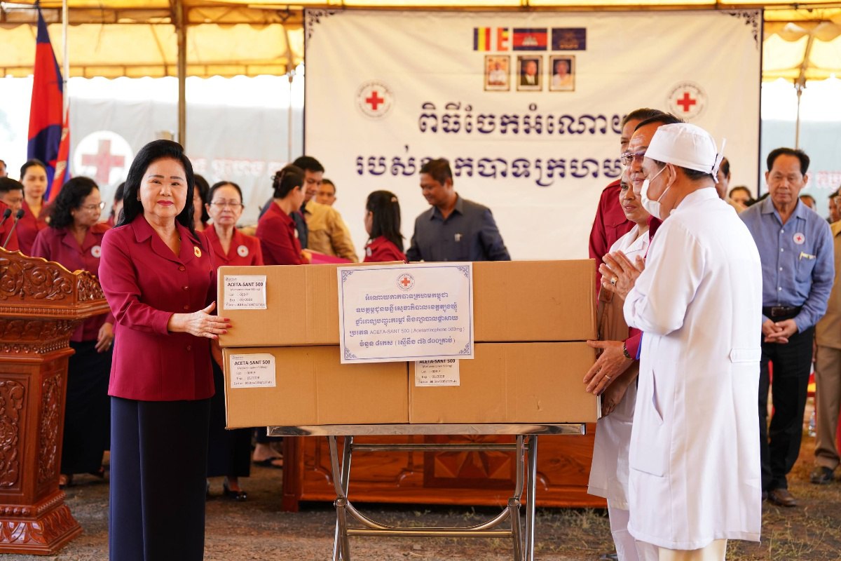 ក្នុងឱកាសនោះដែរ សម្តេចកិត្តិព្រឹទ្ធបណ្ឌិត ប៊ុន រ៉ានី ហ៊ុនសែន ក៏បានឧបត្ថម្ភថ្នាំពេទ្យបញ្ចុះកម្តៅ និងព្យាបាលផ្តាសាយប្រភេទ ACETA-SANT 500 ចំនួន ៨កេស (ស្មើនឹង ៧៦.៨០០គ្រាប់) ជូនមន្ទីរសុខាភិបាលខេត្តត្បូងឃ្មុំ និងចំនួន ៨កេសទៀត ជូនដល់មន្ទីរសុខាភិបាលខេត្តកំពង់ចាម សម្រាប់ចាត់ចែងបន្តដល់មន្ទីរពេទ្យបង្អែក និងមណ្ឌលសុខភាពក្នុងខេត្តនីមួយៗផងដែរ៕