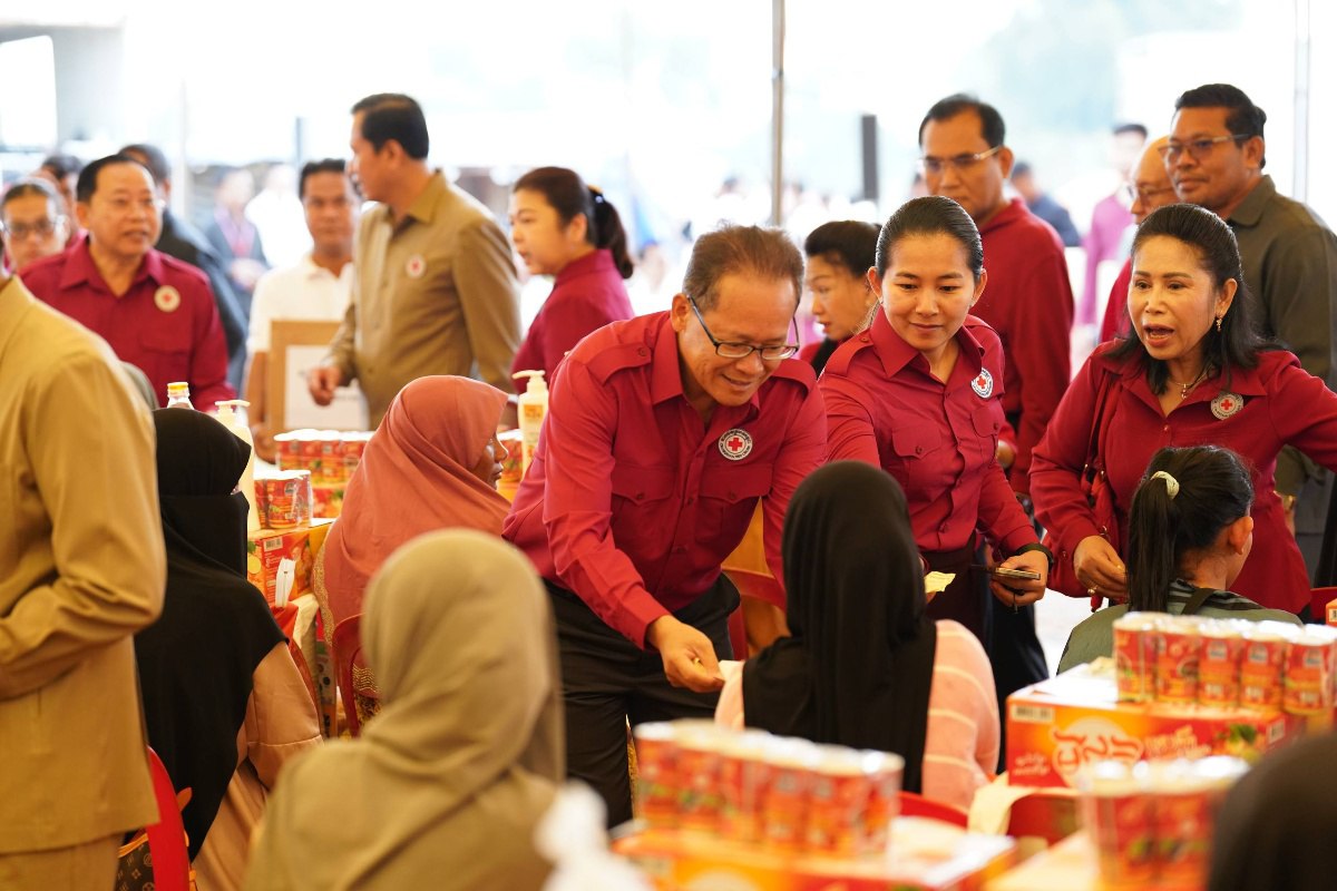 ក្នុងឱកាសនោះ សម្តេចកិត្តិព្រឹទ្ធបណ្ឌិត បាននាំនូវព្រះរាជបន្ទូលនិងព្រះសវណីយ៍ផ្តាំផ្ញើសួរសុខទុក្ខ ប្រកបដោយព្រះរាជហឫទ័យក្តីនឹករលឹក និងសេចក្តីស្រឡាញ់ដ៏ជ្រាលជ្រៅ ពីព្រះករុណា ព្រះមហាក្សត្រ ជាអម្ចាស់ជីវិតលើត្បូង និងសម្តេចព្រះមហាក្សត្រី ព្រះវររាជមាតាជាតិខ្មែរ ព្រះប្រធានកិត្តិយសកាកបាទក្រហមកម្ពុជា ជាទីគោរពសក្ការៈដ៏ខ្ពង់ខ្ពស់បំផុត ដែលជានិច្ចកាល ព្រះអង្គទាំងទ្វេតែងតែគិតគូរពីសុខទុក្ខប្រជានុរាស្ត្ររបស់ព្រះអង្គគ្រប់ពេលវេលា និងនៅគ្រប់ទីកន្លែង។ ជាក់ស្ដែង កាលពីថ្ងៃទី៣ ខែតុលា ឆ្នាំ២០២៥កន្លងទៅនេះ សម្តេចព្រះវររាជមាតាជាតិខ្មែរ បានសព្វព្រះរាជហឫទ័យ ប្រោសព្រះរាជទាននូវព្រះរាជទ្រព្យចំនួន ២ម៉ឺនដុល្លារអាម៉េរិក សម្រាប់យកមកចែកជូនប្រជាពលរដ្ឋ ដែលរងផលប៉ះពាល់ដោយទឹកជំនន់នៅក្នុងស្រុកត្បូងឃ្មុំ ខេត្តត្បូងឃ្មុំរបស់យើងនេះ។
