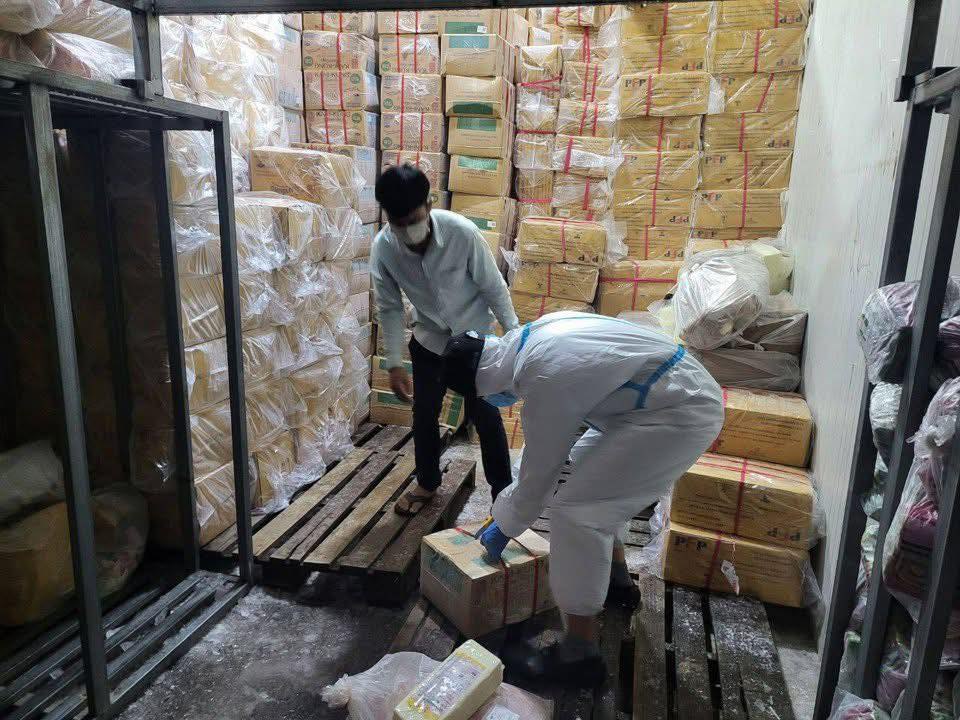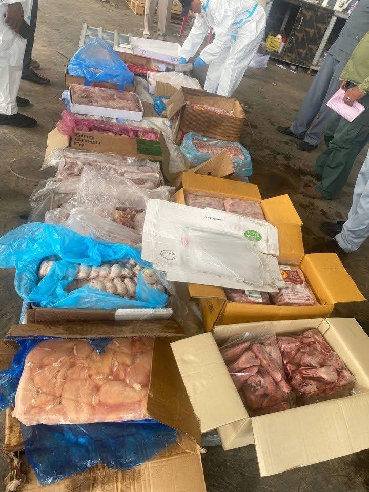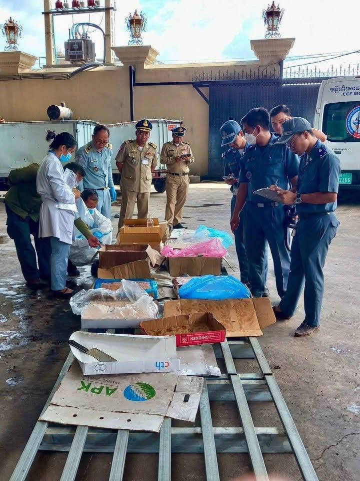 ភ្នំពេញ ៖ សមត្ថកិច្ចចម្រុះរួមមានមន្រ្តីគយចល័តតំបន់១ មន្ត្រី ក.ប.ប ក្រសួងពាណិជ្ជកម្ម មន្រ្តីនគរបាលសេដ្ឋកិច្ចស្នងការដ្ឋាននគរបាលរាជធានីភ្នំពេញ រួមទាំងមន្ត្រីមូលដ្ឋាន បានត្រួតពិនិត្យសាច់ក្លាសេរបស់ ឧកញ៉ា អ៉ឹម សុផាន់ណារឹទ្ធ ហៅចែទូច ចំនួន ២ទីតាំង នៅសង្កាត់ ច្រាំងចំរេះ១ ខណ្ឌ ឬស្សីកែវ រកឃេីញសាច់ក្លាសេសរុបចំនួន៣មុខ សាច់មាន់ សាច់ទា សាច់ជ្រូក សរុបចំនួនជាង ២៤៤ តោន ។