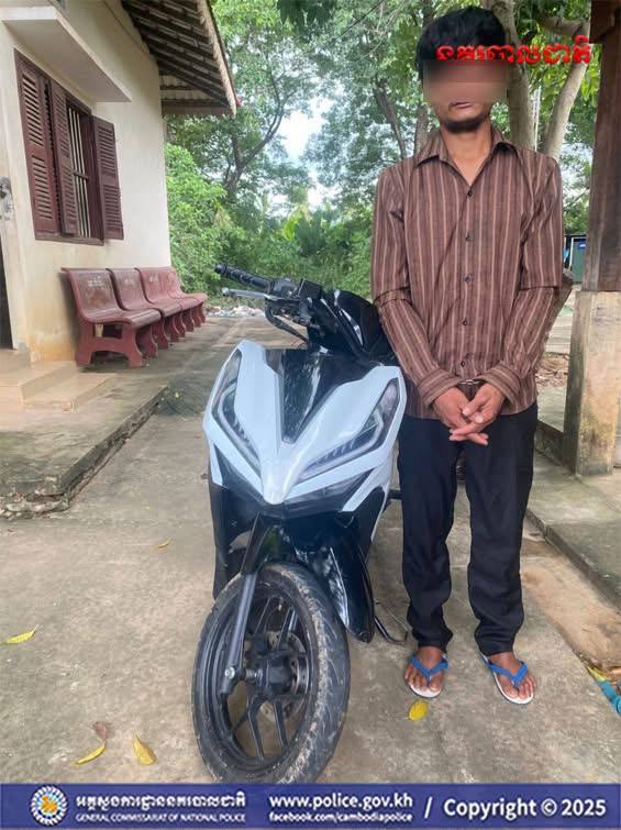 ពោធិ៍សាត់ ៖ អនុវត្តតាមបទបញ្ជាដ៏ខ្ពង់ខ្ពស់របស់ ឯកឧត្តម នាយឧត្តមសេនីយ៍ ស ថេត អគ្គស្នងការនគរបាលជាតិ និងការយកចិត្តទុកដាក់ណែនាំចង្អុលបង្ហាញពី លោកឧត្តមសេនីយ៍ទោ ស ថេង ស្នងការនគរបាលខេត្តពោធិ៍សាត់ កាលពីថ្ងៃទី៥ ខែតុលា ឆ្នាំ២០២៥ វេលាម៉ោង៨និង២០នាទី មានឈ្មោះ ឆែ ចាន់ហេង ភេទប្រុស អាយុ៣៨ឆ្នាំ មុខរបរលក់ដូរ រស់នៅភូមិក្បាល ស្ពានថ្ម សង្កាត់ព្រៃញី ក្រុងពោធិ៍សាត់ ខេត្តពោធិ៍សាត់ បានមកដាក់ពាក្យបណ្តឹងថា កាលពីថ្ងៃទី១ខែតុលា ឆ្នាំ២០២៥ វេលាម៉ោង១៤និង០០នាទី ឈ្មោះ កង វិត ភេទប្រុស អាយុ២៥ឆ្នាំ មុខរបរមិនពិតប្រាកដ រស់នៅភូមិប្រឡាយធំ ឃុំវាល ស្រុកកណ្ដៀង ខេត្តពោធិ៍សាត់ បានខ្ចីម៉ូតូជាកម្មសិទ្ធិរបស់ខ្លួន ម៉ាកហុងដាឃ្លីក(Click)ពណ៌ស គ្មានស្លាកលេខ ថាជិះទៅមើលភ្លើង ពេលនោះខ្លួនក៏បានអោយខ្ចីម៉ូតូជាកម្មសិទ្ធិ ជិះទៅបាត់ដំណឹងរហូតដល់បច្ចុប្បន្ន។ ជនរងគ្រោះឈ្មោះ ឆែម ចាន់ហេង ក៏បានសំណូមពរសុំអោយសមត្ថកិច្ចជួយអន្តរាគមន៍ស្រាវជ្រាវរុករកជនសង្ស័យឈ្មោះ កង វិត ដើម្បីយកម៉ូតូមកប្រគល់អោយខ្លួនវិញ នឹងអោយសមត្ថកិច្ចផ្តន្ទាទោសតាមផ្លូវច្បាប់។