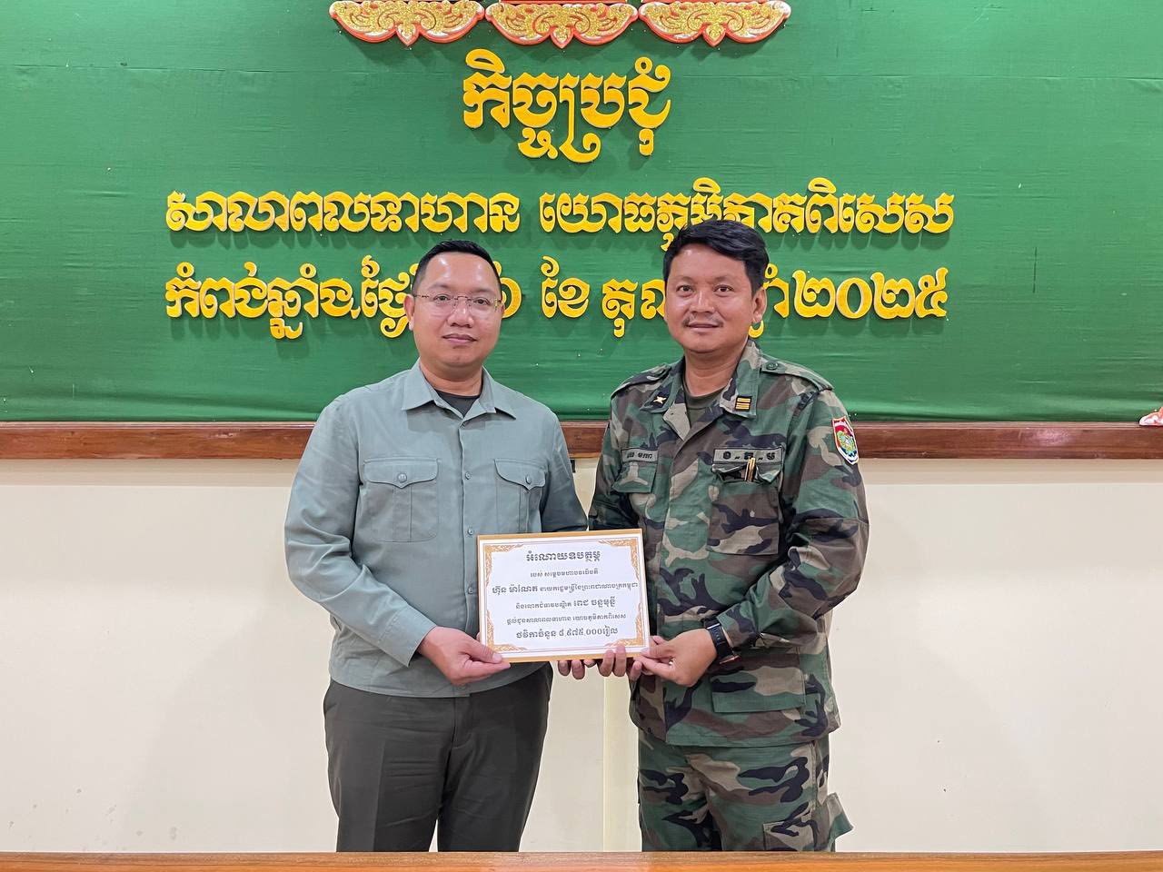 សម្តេចមហាបវរធិបតី និងលោកជំទាវបណ្ឌិត បានផ្តល់ អំណោយជូន ដល់សាលាពលទាហាន យោធភូមិភាគពិសេស ក្នុងនាមនាយក នាយករង នាយទាហាន នាយទាហានរង និងពលទាហាន វរសេនីយ៍ឯក អេន មករា នាយកស្តីទី សាលាពលទាហាន យោធភូមិភាគពិសេស ព្រមទាំងនាយទាហាន នាយទាហានរង ពលទាហានទាំងអស់ សូមគោរពថ្លែងអំណរអរគុណជូនដល់សម្តេចមហាបវរធិបតី ហ៊ុន ម៉ាណែត នាយករដ្ឋមន្ត្រី នៃព្រះរាជាណាចក្រកម្ពុជា និងលោកជំទាវ បណ្ឌិត ពេជ ចន្ទមុន្នី