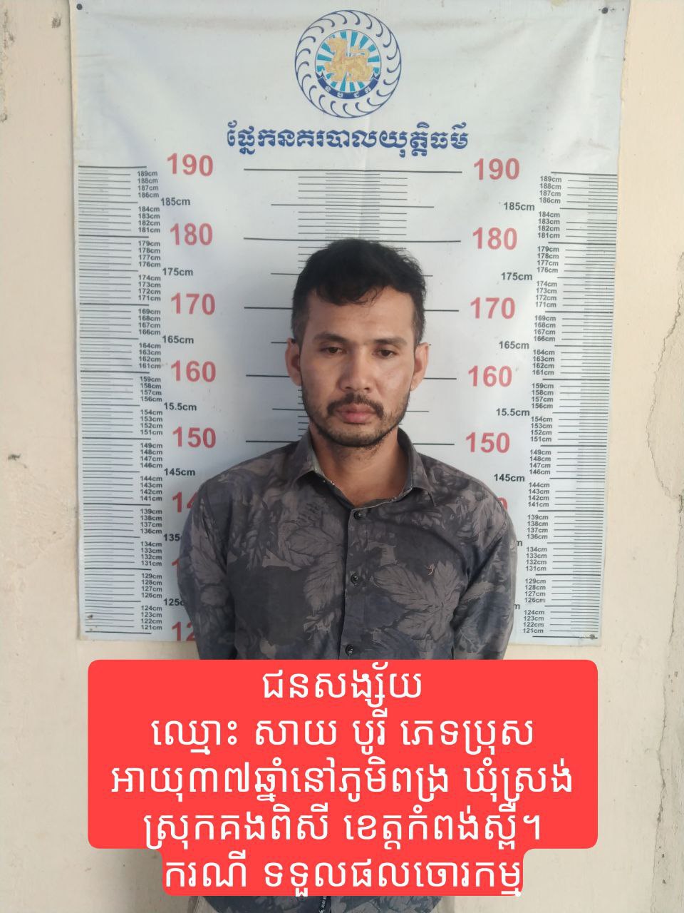 ក្រោយពីទទួលបានចម្លើយខាងលើ កម្លាំងផ្នែកព្រហ្មទណ្ឌ នៃអធិការដ្ឋាននគរបាលស្រុកគងពិសី សហការជាមួយការិយាល័យព្រហ្មទណ្ឌកំរិតធ្ងន់ នៃស្នងការដ្ឋាននគរបាលខេត្តកំពង់ស្ពឺ បានធ្វើការឃាត់ខ្លួនបានមុខសញ្ញាសង្ស័យទទួលផលចោរកម្ម ចំនួន ២នាក់ ៖