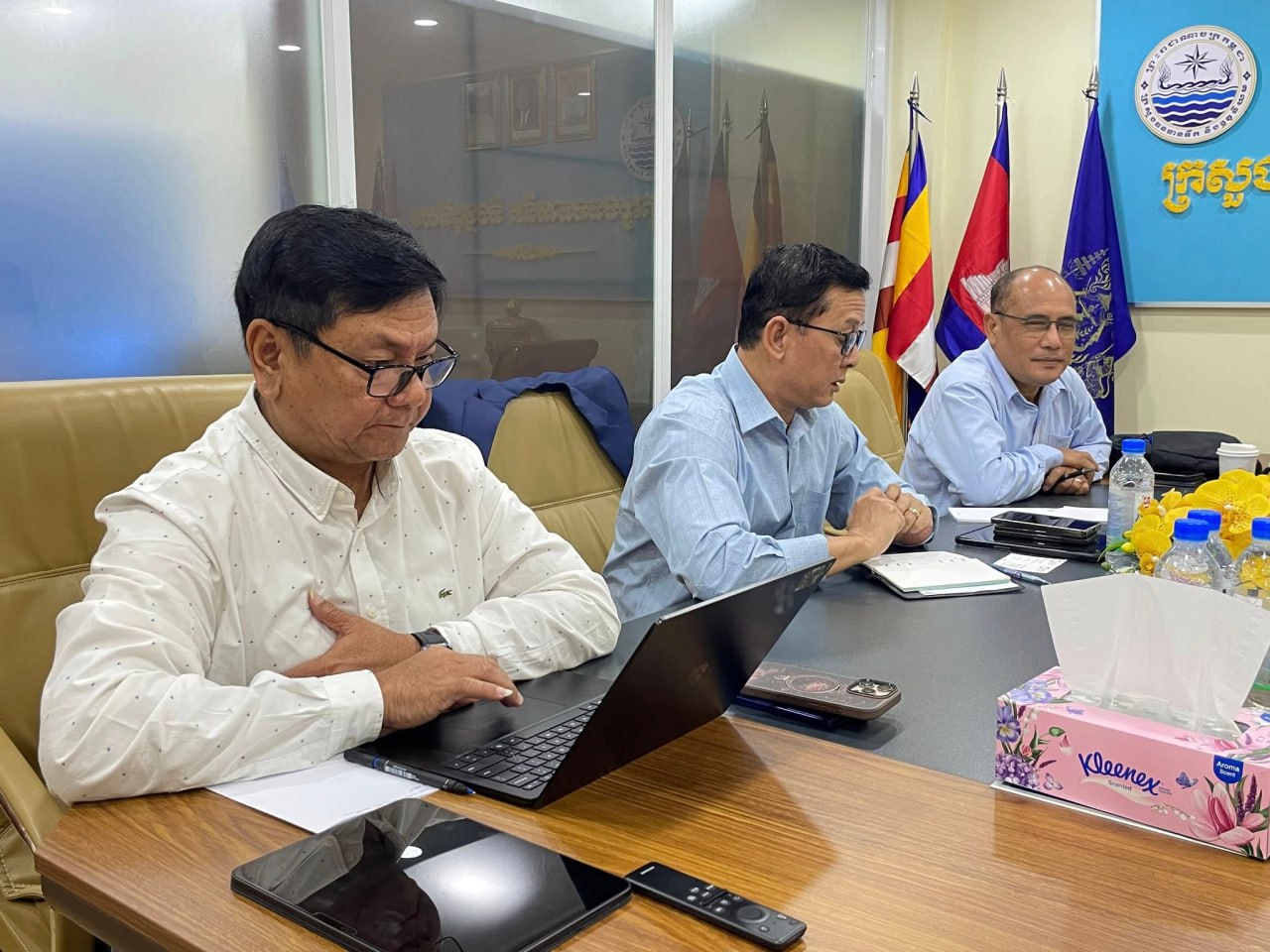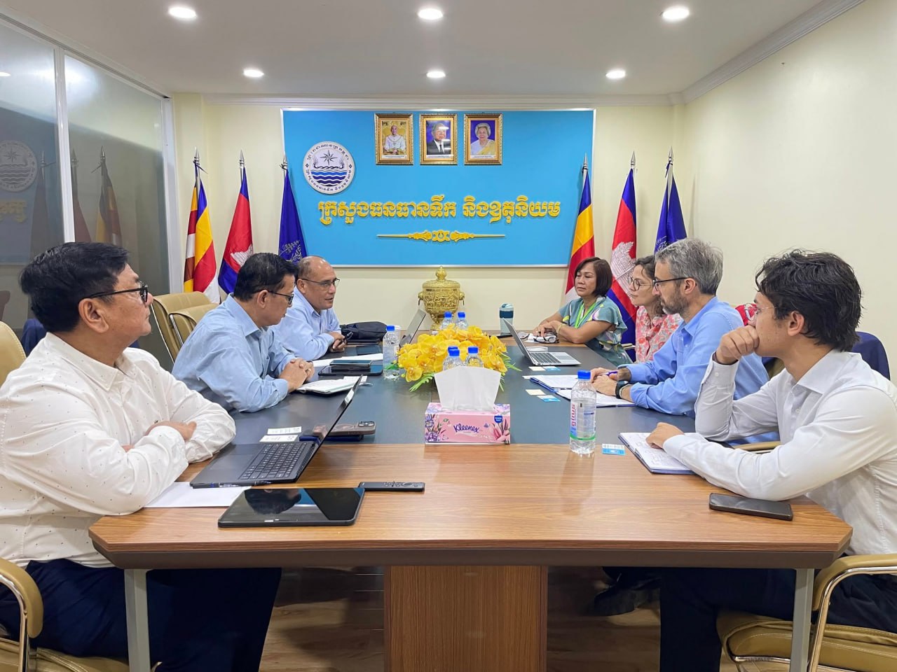 នាថ្ងៃអង្គារ ១៥កើត ខែអស្សុជ ឆ្នាំម្សាញ់ ឆស័ក ព.ស.២៥៦៩ ត្រូវនឹងថ្ងៃទី៧ ខែតុលា ឆ្នាំ២០២៥ ឯកឧត្តម ចាន់ យុត្ថា រដ្ឋលេខាធិការ និងជានាយកទទួលបន្ទុកគម្រោងក្រោមហិរញ្ញប្បទានពីទីភ្នាក់ងារបារាំងសម្រាប់អភិវឌ្ឍន៍ (AFD) ក្នុងនាមតំណាងដ៏ខ្ពង់ខ្ពស់ឯកឧត្តម ថោ ជេដ្ឋា រដ្ឋមន្រ្តីក្រសួងធនធានទឹក និងឧតុនិយម បានទទួលជួបពិភាក្សាការងារជាមួយលោក Martin LEMENAGER ប្រធានក្រុមបេសកកម្មវាយតម្លៃផ្នែកគម្រោងជលសាស្ត្រទន្លេមេគង្គ ជំហានទី១ និងទី២ (២០១៥-២០២៥) របស់ទីភ្នាក់ងារបារាំងសម្រាប់អភិវឌ្ឍន៍(AFD) និងសហការី នៅទីស្ដីការក្រសួងធនធានទឹក និងឧតុនិយម។