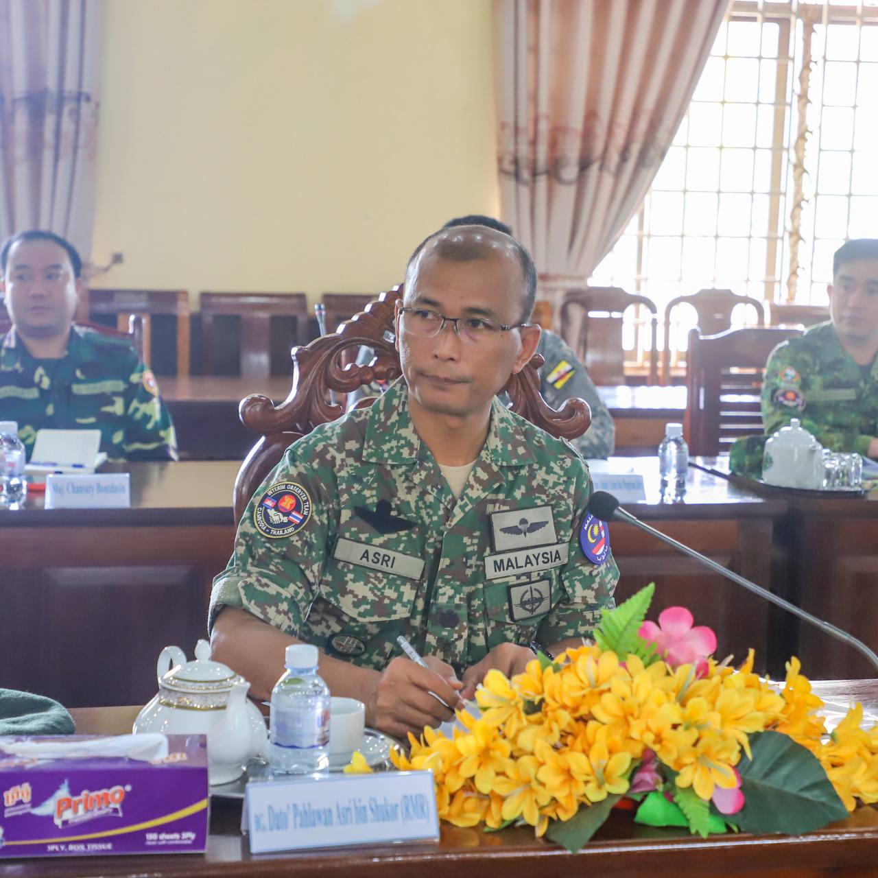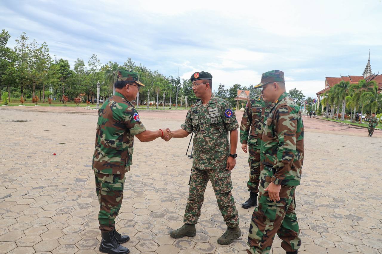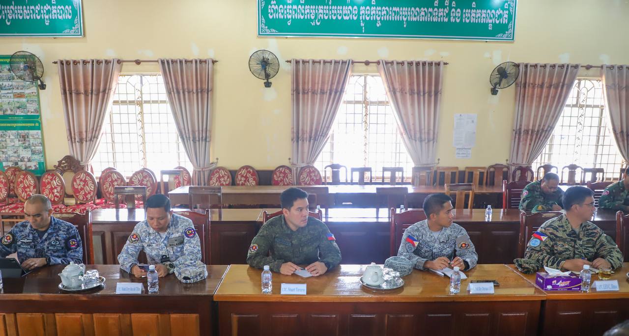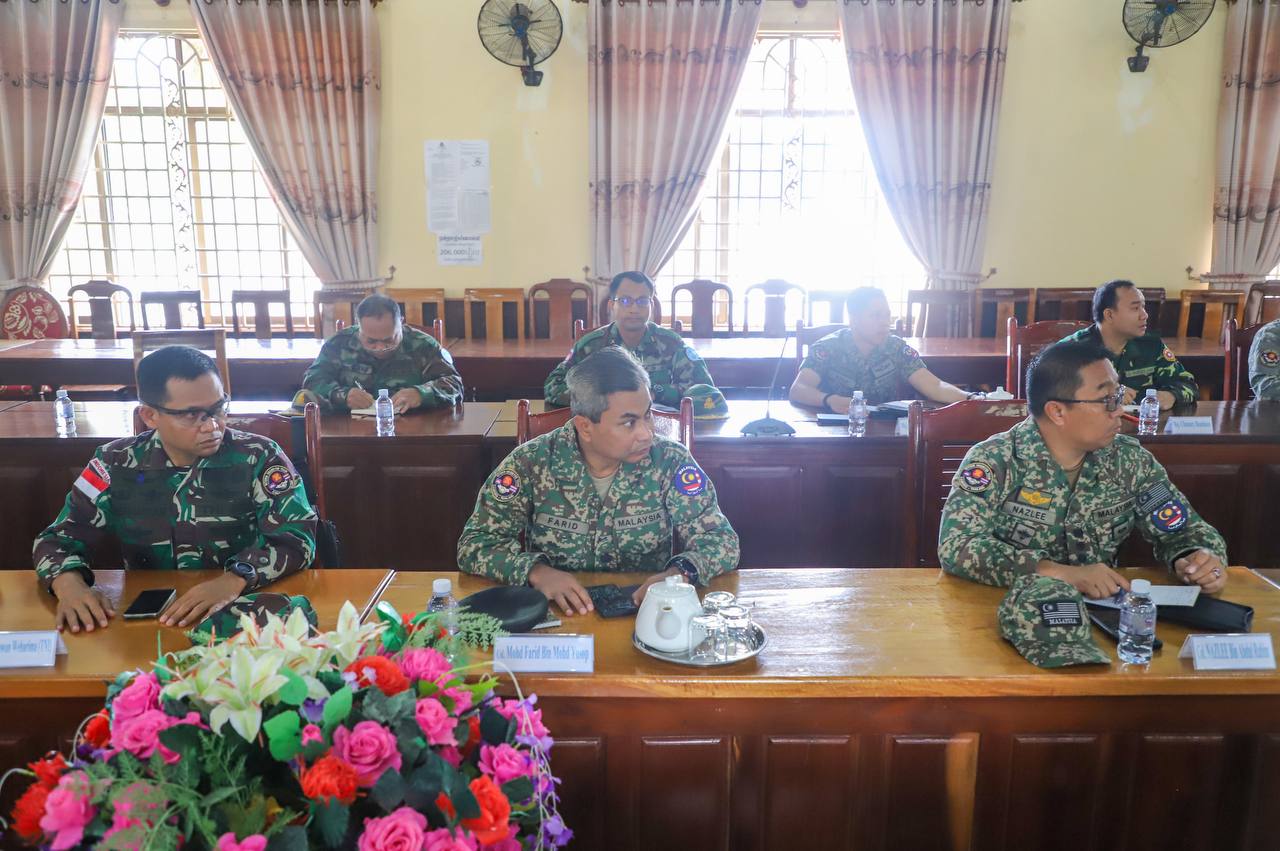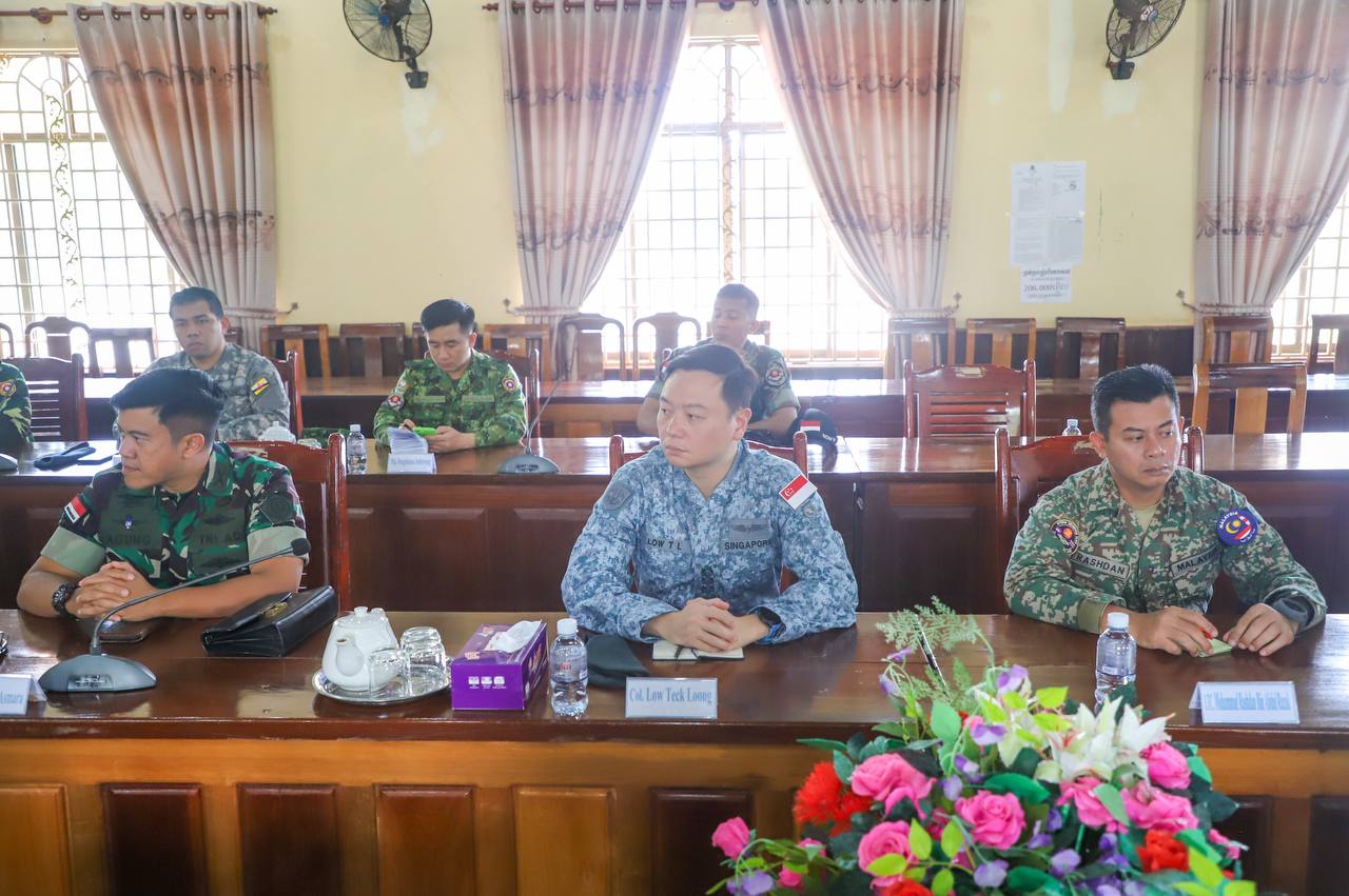 On Thursday morning, 9 October 2025, the Ministry of National Defense of the Kingdom of Cambodia facilitated the Interim Observer Team (IOT) led by Malaysia, along with its members, to pay a courtesy call on H.E. Lieutenant General Pov Heng, Commander of the 4th Military Region of the Royal Cambodian Army at the 4th Military Region Headquarters, where the team listened to a presentation on “the situation along the border after the ceasefire came into effect”.