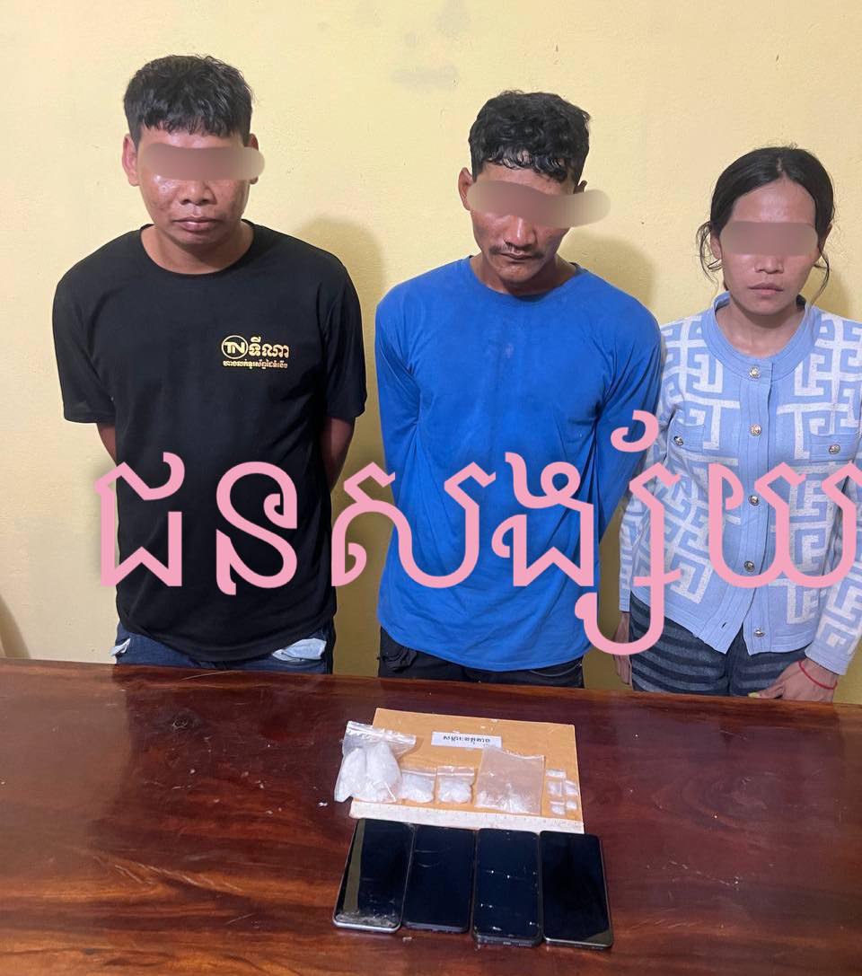 ប្រឆាំងគ្រឿងញៀន កំលាំងអធិការដ្ឋាននគរបាលស្រុកសាមគ្គីមុនីជ័យលោកវរសេនីយ៍ទោ សាវ សុភក្កី អធិការស្ដីទីបានដឹកនាំកំលាំងចុះស្រាវជ្រាវយោងតាមព័ត៌មានប្រជាពលរដ្ឋរាយការណ៍នៅព្រៃខាងលិចភូមិត្រពាំងវែង ឃុំដំណាក់រាំង និងបានឃាត់មុខសញ្ញាសង្ស័យចំនួន៣នាក់៖ ១.ឈ្មោះ វន វ៉ុន ភេទប្រុស អាយុ២៤ឆ្នាំ ២.ឈ្មោះ ធា ស្រីនៀត ភេទស្រី អាយុ២៧ឆ្នាំ ៣.ឈ្មោះ ធី វន្ថា ភេទប្រុស អាយុ៣៤ឆ្នាំ ។