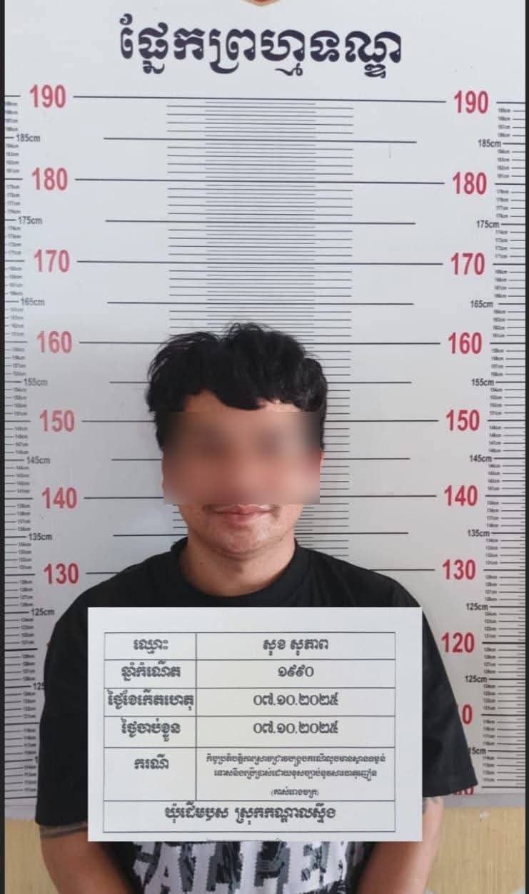 ជនសង្ស័យដែលឃាត់ខ្លួនបានមានចំនួន ៥នាក់ រួម មានឈ្មោះ សុខ សុភាព ភេទប្រុស អាយុ៣៥ឆ្នាំ,ឈ្មោះ សឺង ឌុនភេទប្រុស អាយុ២៥ឆ្នាំ,ឈ្មោះឃឹម ផល្លីនភេទ ប្រុសអាយុ ២៤ឆ្នាំឈ្មោះ យឿន គន្ធា ភេទប្រុស អាយុ ៣៤ ឆ្នាំនិងឈ្មោះ តូ នឿន ភេទប្រុស អាយុ ៣៨ឆ្នាំ។ ជនសង្ស័យចំនួន ៤នាក់មានសារធាតុញៀនក្នុងខ្លួនវិជ្ជមាន (+). វត្ថុតាងដែលដកហូតបានរួមមាន ម៉ូតូ ២ គ្រឿង, ទូរសព្ទ ២គ្រឿង និងឧបករណ៍សម្រាប់ធ្វើសកម្មភាពលួចមួយចំនួន។