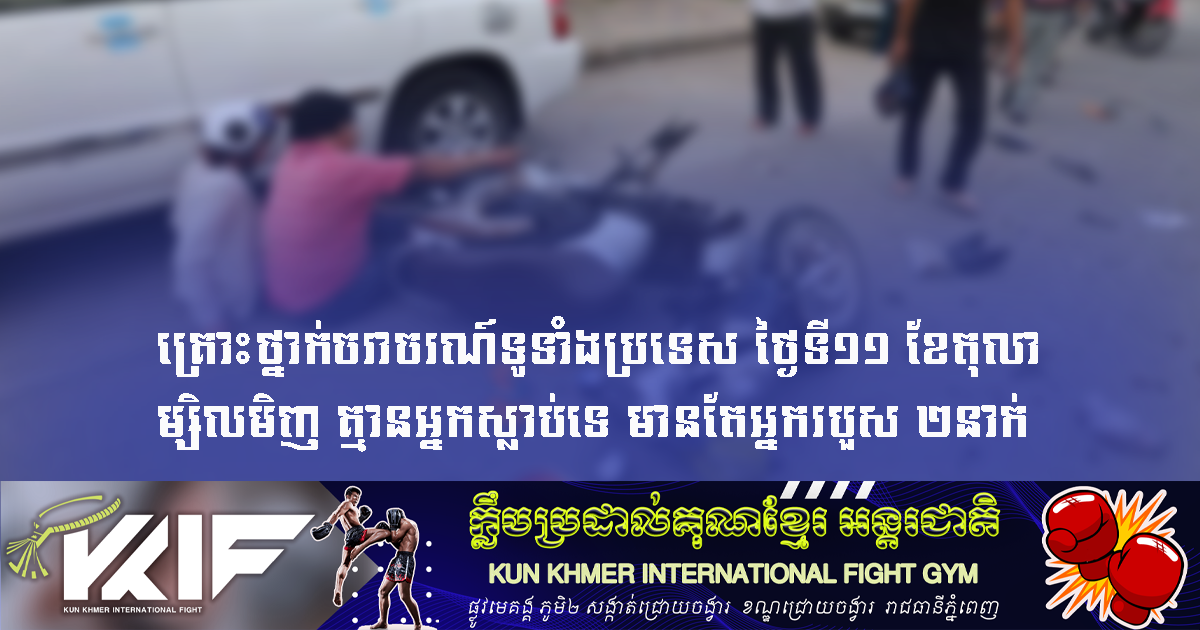 គ្រោះថ្នាក់ចរាចរណ៍ទូទាំងប្រទេស ថ្ងៃទី១១ ខែតុលាម្សិលមិញ គ្មានអ្នកស្លាប់ទេ មានតែអ្នករបួស ២នាក់