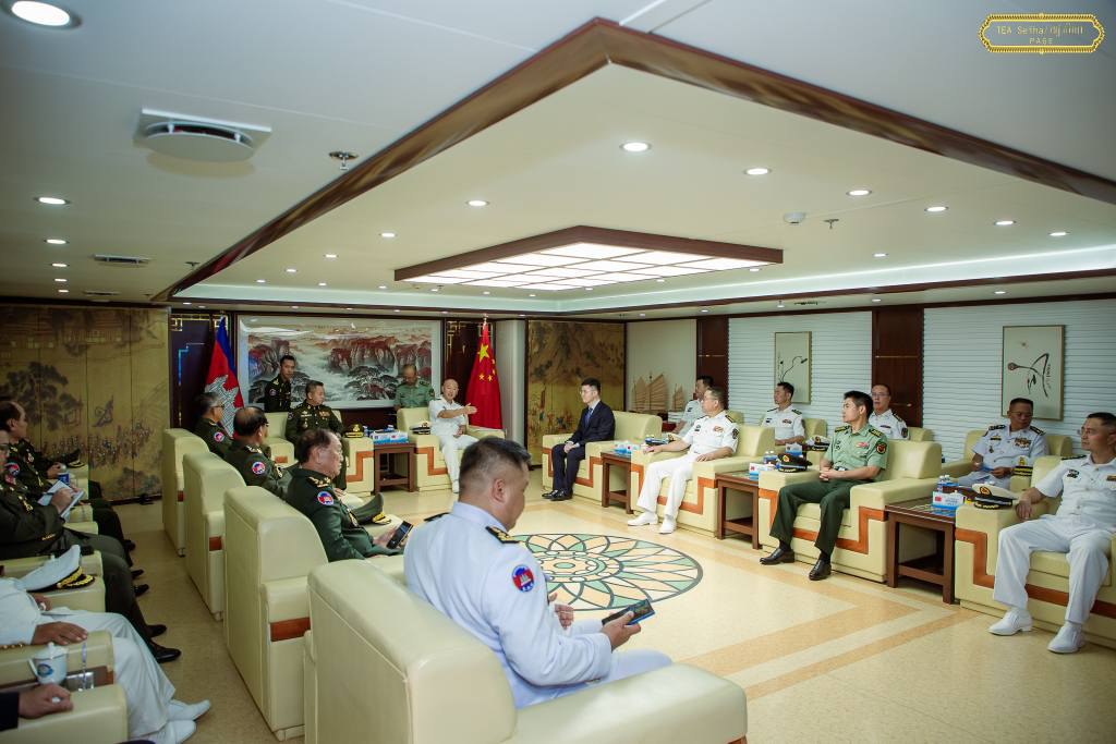 ឯកឧត្តម នាយឧត្តមសេនីយ៍ ទៀ សីហា ឧបនាយករដ្ឋមន្រ្តី រដ្ឋមន្រ្តីក្រសួងការពារជាតិ បានអញ្ជើញ ទស្សនកិច្ចលើនាវា PLAN 83 និង PLAN 988 របស់ កងទ័ពជើងទឹក នៃកងទ័ពរំដោះប្រជាជនចិន និងបានទទួលស្វាគមន៍ វរនាវីឯកពិសេស XU JIANGUO នាយករងសាលាបណ្ឌិត្យសភាកងទ័ពជើងទឹក Dalian PLAN និងជាមេបញ្ជាការនាវាហ្វឹកហ្វឺន Flotilla ចូលជួបសម្តែងការគួរសម នៅកំពង់ផែស្វយ័ត ក្រុងព្រះសីហនុ ៕