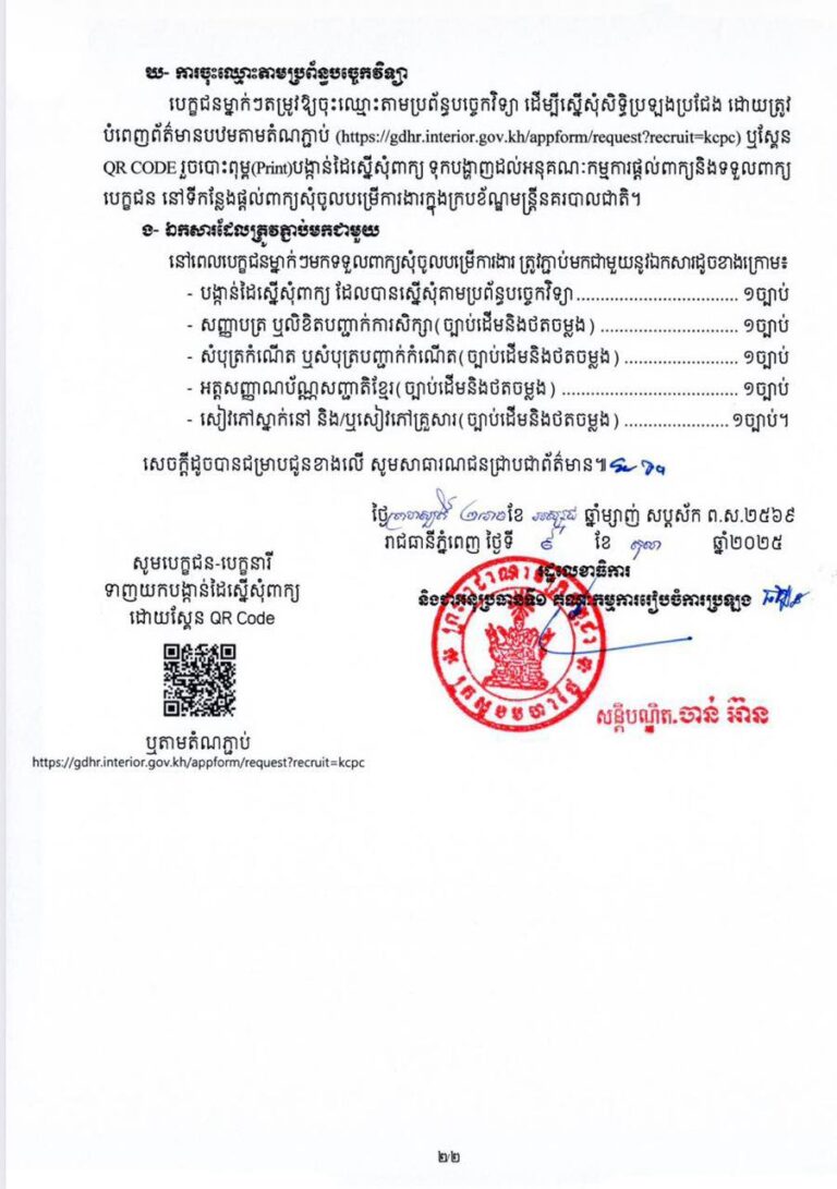 ឱកាស! សេចក្តីជូនដំណឹង ស្តីពី ការប្រឡងប្រជែងជ្រើសរើសក្របខ័ណ្ឌមន្ត្រីនគរបាលជាតិសម្រាប់ឆ្នាំ២០២៥ ឱ្យចូលបម្រើការងារនៅស្នងការដ្ឋាននគរបាលកំពង់ចាម ៕