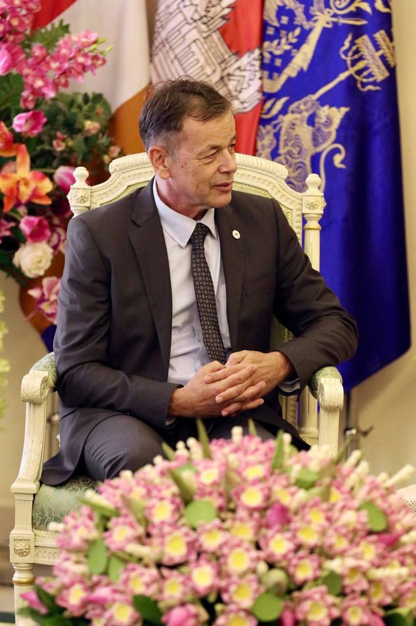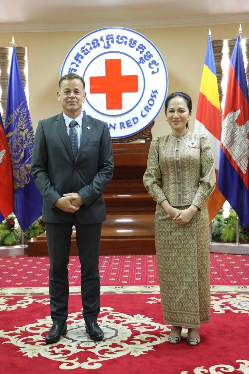 ( ភ្នំពញ) លោកជំទាវបណ្ឌិត ពេជ ចន្ទមុន្នី ហ៊ុនម៉ាណែត អនុប្រធានអចិន្ត្រៃយ៍កាកបាទក្រហមកម្ពុជា អនុញ្ញាតជូនលោក Jurg Montani ប្រធានប្រតិភូគណៈកម្មាធិការអន្តរជាតិនៃកាកបាទក្រហម (អាយ.ស៊ី.អរ.ស៊ី.) ប្រចាំភូមិភាគ និងក្រុមការងារ ចូលជួបសម្តែងការគួរសម និងពិភាក្សាការងារ នារសៀលថ្ងៃទី១៣ ខែតុលា ឆ្នាំ២០២៥ នៅទីស្នាក់ការកណ្តាលកាកបាទក្រហមកម្ពុជា រាជធានីភ្នំពេញ។