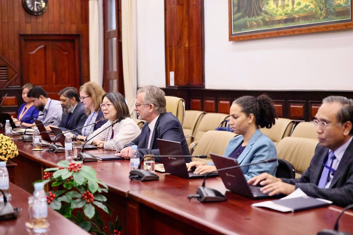ក្នុងឱកាសនៃជំនួបនេះ តំណាង ធនាគារអភិវឌ្ឍន៍អាស៊ី ADB បានអបអរសាទរចំពោះការបិទបញ្ចប់គម្រោងអភិវឌ្ឍន៍វិស័យអប់រំមធ្យមសិក្សាទុតិយភូមិទី២ (USESDP-II) ដោយជោគជ័យ និងបានគូសបញ្ជាក់នូវមោទនភាពក្នុងភាពជាដៃគូជាមួយក្រសួងអប់រំ យុវជន និងកីឡាគាំទ្រលើគម្រោងនេះ ដែលសម្រេចបានសមិទ្ធផលជាច្រើន ព្រមទាំងបានថ្លែងអំណរគុណដល់ក្រសួងអប់រំ យុវជន និងកីឡា ចំពោះការផ្តល់កិច្ចសហប្រតិបត្តិការប្រកបដោយការយកចិត្តទុកដាក់ និងបានពិភាក្សាអំពីគម្រោងអភិវឌ្ឍវិស័យអប់រំ និងអាទិភាពថ្មីៗ ដូចជា៖ (១) វឌ្ឍនភាពនៃការអនុវត្តគម្រោង STEP UP និង SE4HC (២) ការពង្រឹងគន្លងអប់រំ (ផ្នែកវិទ្យាសាស្ត្រ វិទ្យាសាស្ត្រសង្គម និងការបណ្ដុះបណ្ដាលបច្ចេកទេសក្នុងការអប់រំកម្រិតមធ្យមសិក្សា) ដែលនឹងជំរុញការអប់រំ STEM និងកែលម្អការផ្លាស់ប្តូរពីសាលារៀនទៅការងារ (school-to-work transition) (៣) ការសិក្សាដែលកំពុងបន្តធ្វើការជាមួយ UNICEF និង ធនាគារពិភពលោក ស្តីពីផលប៉ះពាល់រយៈពេលខ្លី និងរយៈពេលវែងនៃការប៉ះពាល់នឹងកម្តៅខ្លាំងទៅលើលទ្ធផលនៃការសិក្សា និងវេទិកាជំនាញអន្តរជាតិ ADB (ADB International Skills Forum) នៅដើមខែធ្នូ ក្នុងទីក្រុងម៉ានីល។
