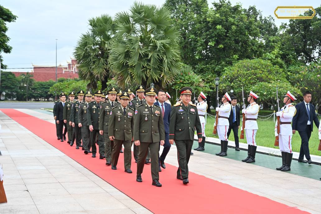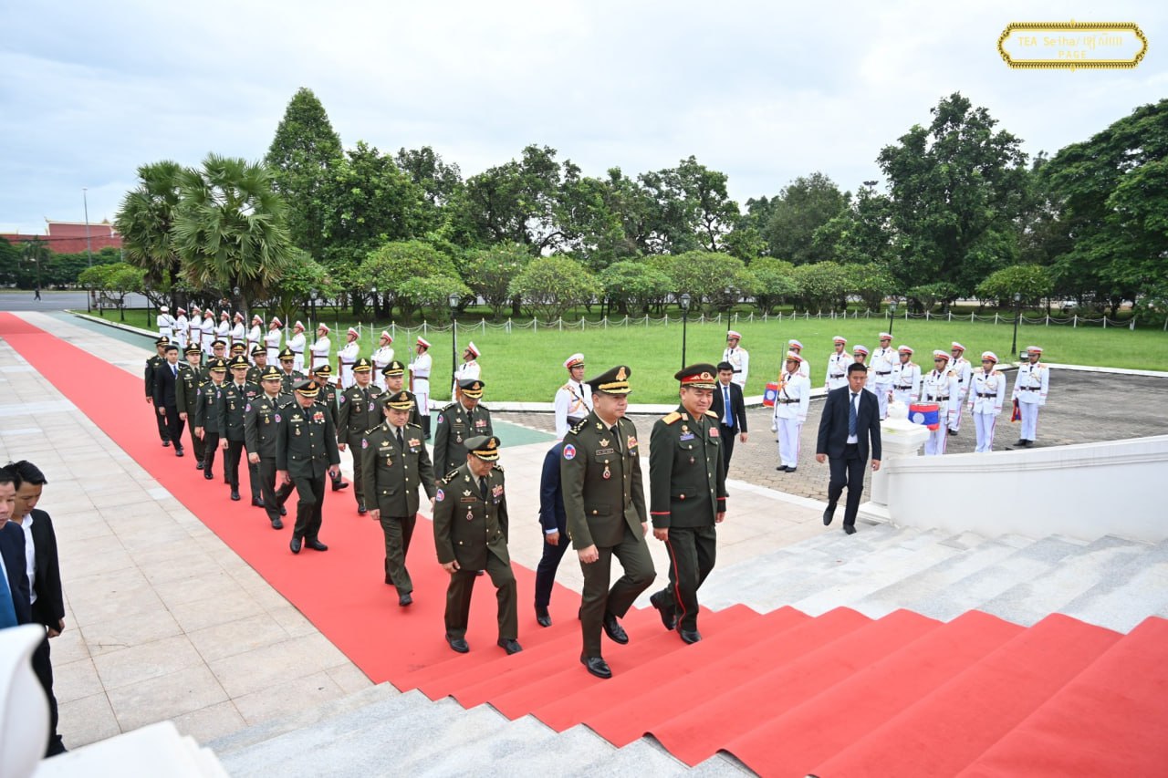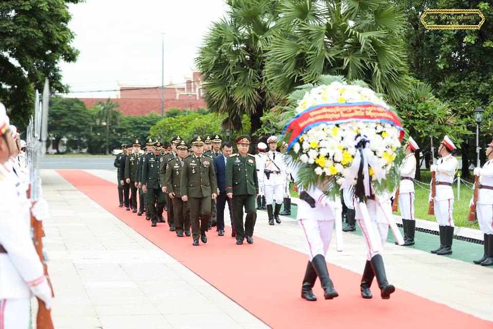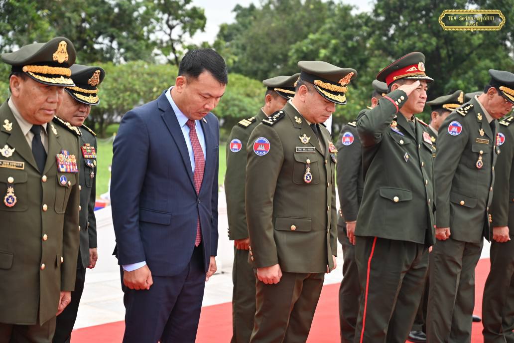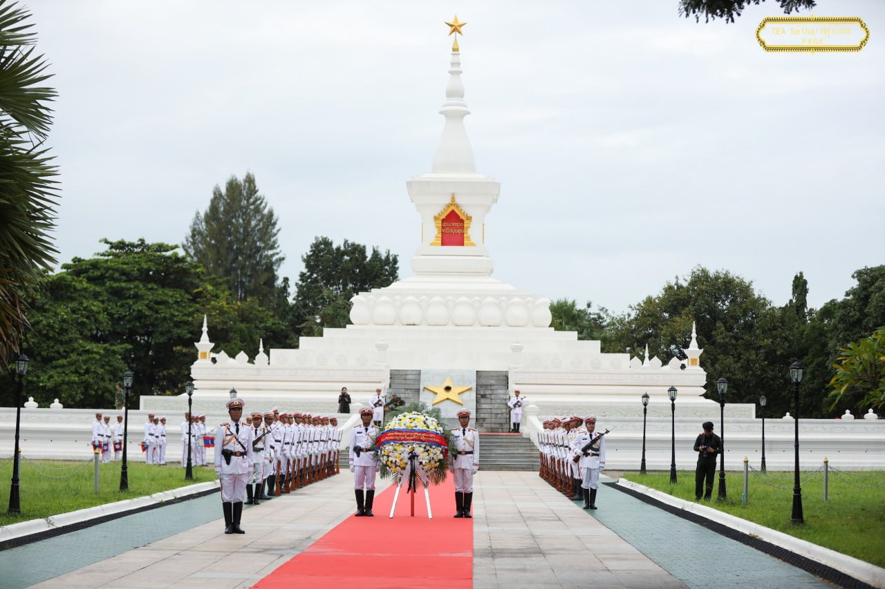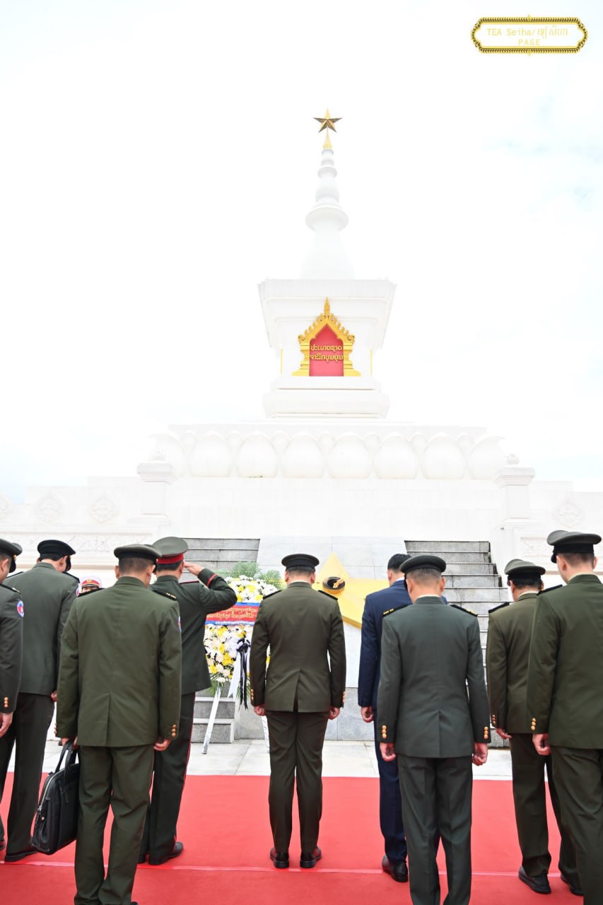 ឯកឧត្តម នាយឧត្តមសេនីយ៍ ទៀ សីហា ឧបនាយករដ្ឋមន្ត្រី រដ្ឋមន្ត្រីក្រសួងការពារជាតិ ដឹកនាំគណៈប្រតិភូជាន់ខ្ពស់ ក្រសួងការពារជាតិ ចូលដាក់កម្រងផ្កា និងគោរពវិញ្ញាណក្ខន្ធ នៅស្តូបយុទ្ធជន នីលាក់ណាម រដ្ឋធានីវៀងចន្ទន៍ សាធារណរដ្ឋប្រជាធិបតេយ្យប្រជាមានិតឡាវ ៕