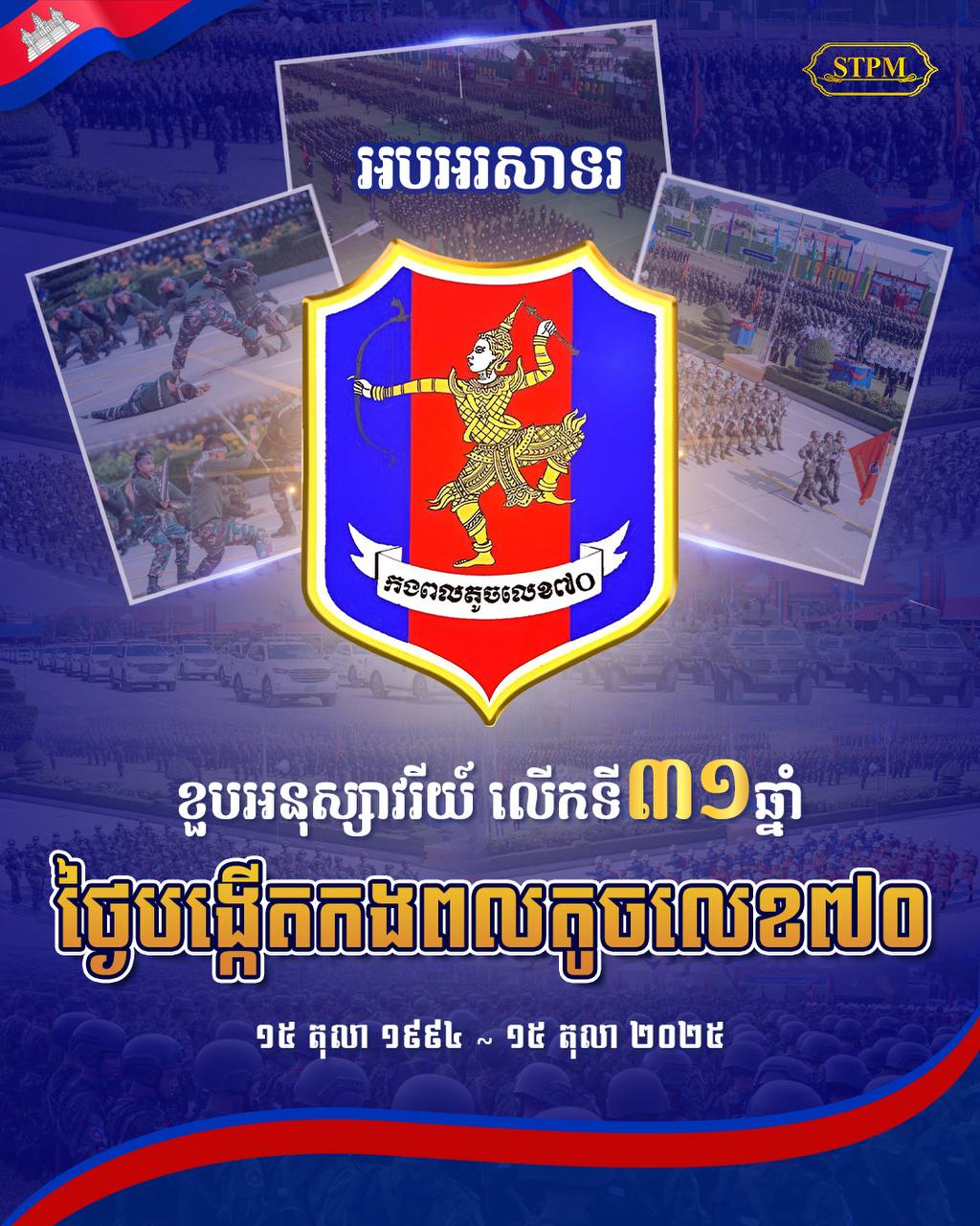 សម្តេចមហាបវរធិបតី ហ៊ុន ម៉ាណែត នាយករដ្ឋមន្ត្រីនៃព្រះរាជាណាចក្រកម្ពុជា អបអរសាទរ ខួបអនុស្សាវរីយ៍លើកទី ៣១ឆ្នាំ ថ្ងៃបង្កើតកងពលតូចលេខ៧០