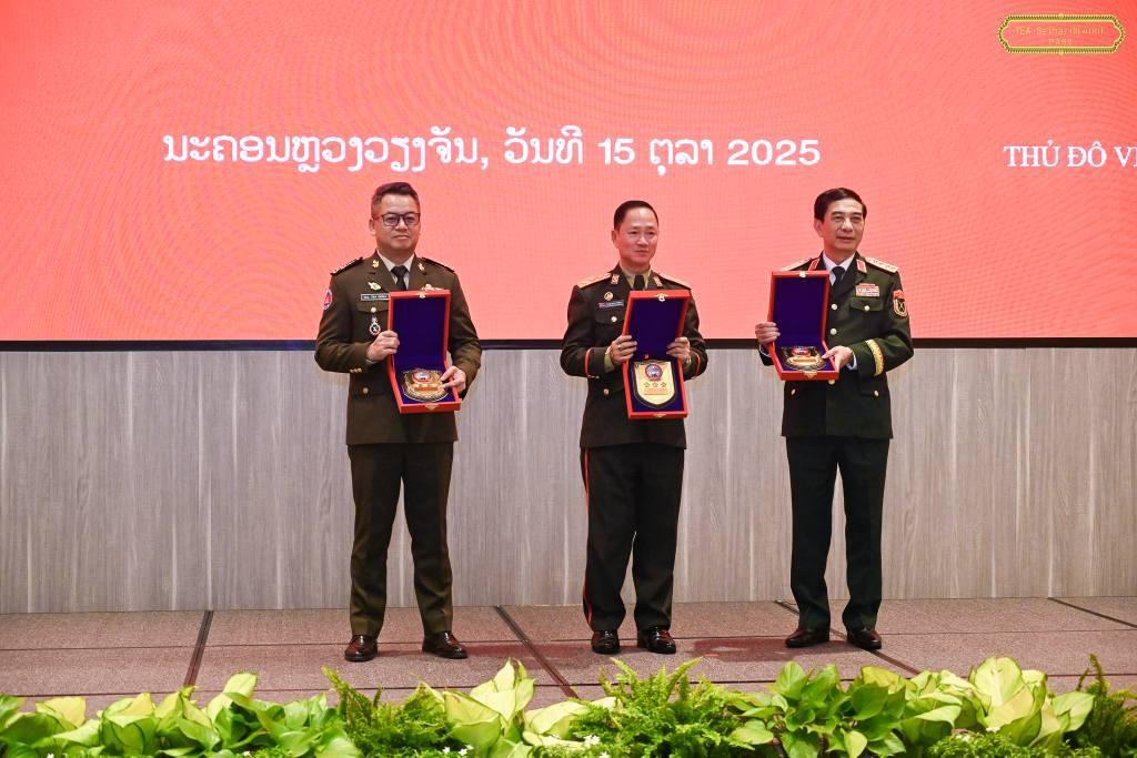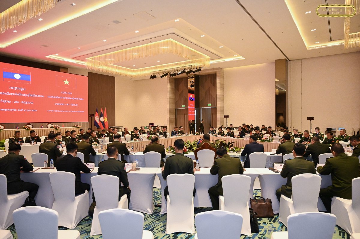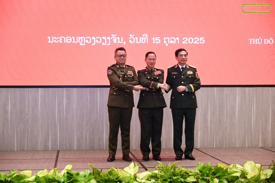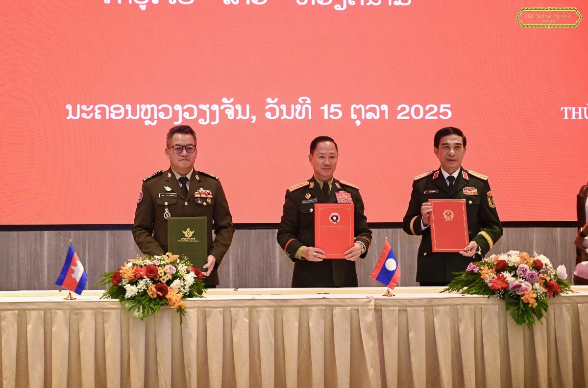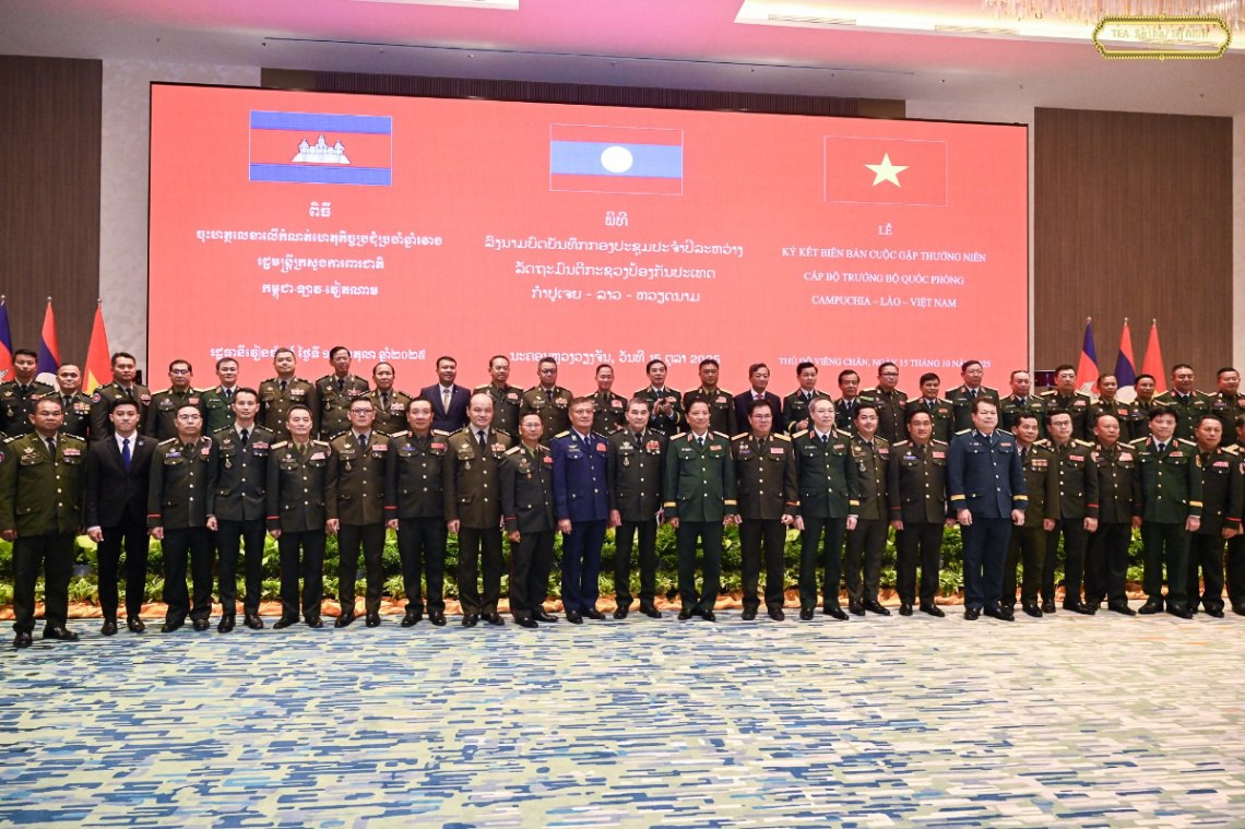នាថ្ងៃទី១៥ ខែតុលា ឆ្នាំ២០២៥ នេះ ឯកឧត្តម នាយឧត្តមសេនីយ៍ ទៀ សីហា ឧបនាយករដ្ឋមន្ត្រី រដ្ឋមន្ត្រីក្រសួងការពារជាតិ បានចូលរួមជំនួបប្រាស្រ័យមិត្តភាពការពារជាតិថ្នាក់រដ្ឋមន្ត្រីក្រសួងការពារជាតិ និងពិធីចុះហត្ថលេខាលើកំណត់ហេតុកិច្ចប្រជុំប្រចាំឆ្នាំរវាង រដ្ឋមន្ត្រីក្រសួងការពារជាតិ កម្ពុជា-ឡាវ-វៀតណាម ប្រចាំឆ្នាំ២០២៥ ដែលធ្វើឡើងនៅរដ្ឋធានីវៀងចន្ទន៍ សាធារណរដ្ឋប្រជាធិបតេយ្យប្រជាមានិតឡាវ។