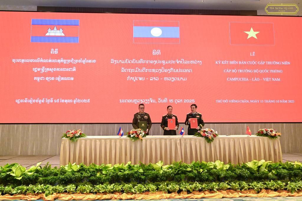 រដ្ឋមន្ត្រីក្រសួងការពារជាតិ កម្ពុជា-ឡាវ-វៀតណាម ចុះហត្ថលេខាលើកំណត់ហេតុកិច្ចប្រជុំប្រចាំឆ្នាំ២០២៥