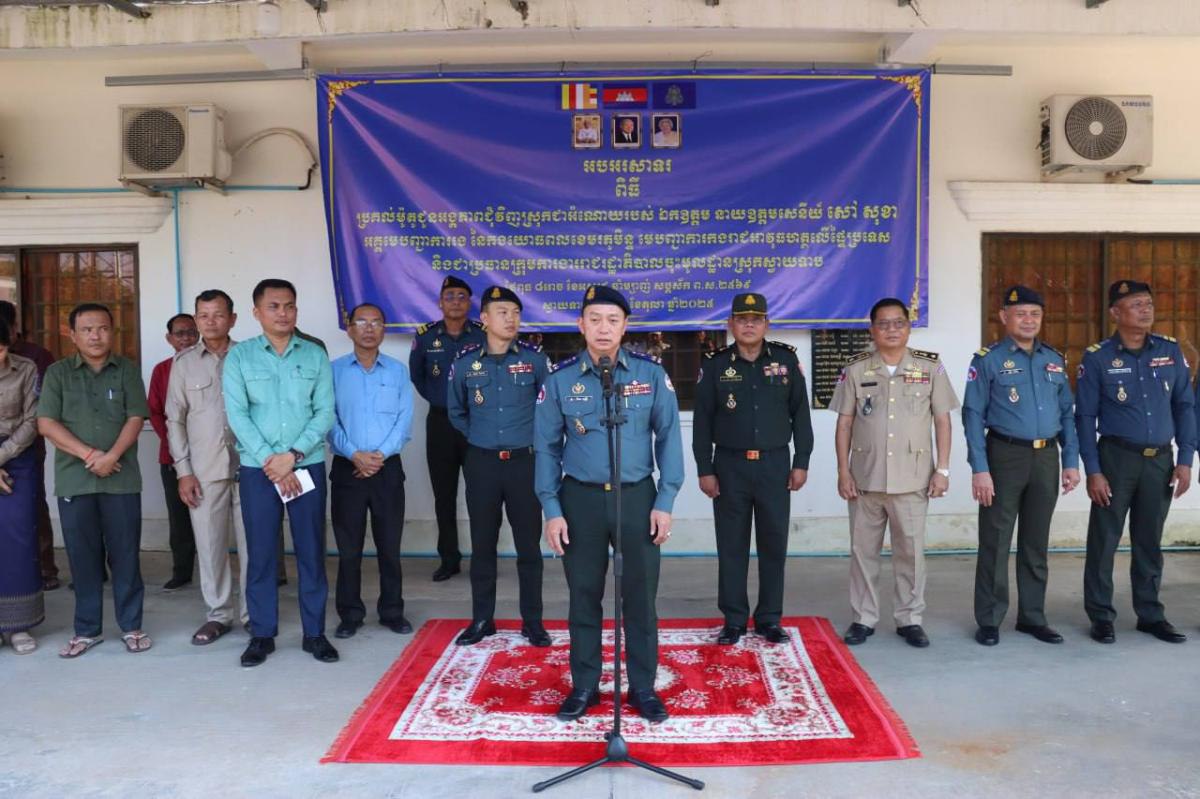 ឯកឧត្តម សៅ សុខា និងសប្បុរសជនផ្តល់ម៉ូតូជាង១០០គ្រឿង និងវិទ្យុទាក់ទងជាង៦០គ្រឿងដល់អធិការ និងសឹករងស្រុកស្វាយទាប ខេត្តស្វាយរៀង