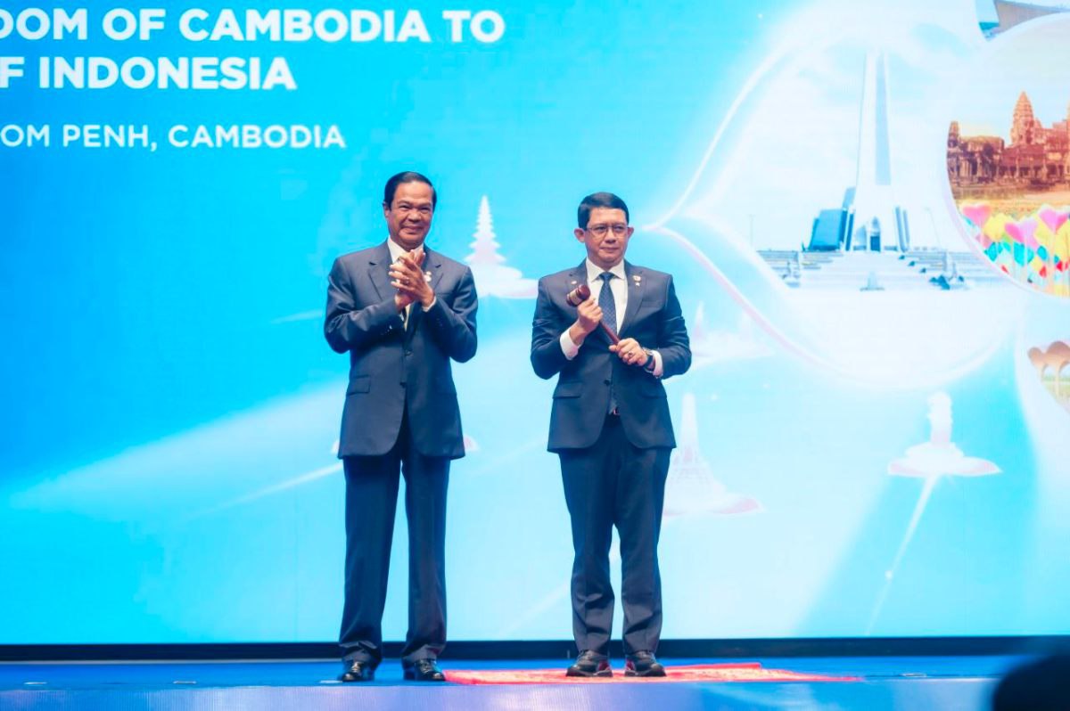 បន្ទាប់ពីបិទបញ្ចប់កិច្ចប្រជុំថ្នាក់រដ្ឋមន្ត្រីអាស៊ាន ស្តីពីការគ្រប់គ្រងគ្រោះមហន្តរាយ លើក១៣ ឯកឧត្តម ទេសរដ្ឋមន្រ្តី គន់ គីម បានអញ្ជើញប្រគល់ញញួរប្តូរវេនទៅប្រធានរៀបចំកិច្ចប្រជុំថ្នាក់រដ្ឋមន្ត្រីអាស៊ាន ស្តីពីការគ្រប់គ្រងគ្រោះមហន្តរាយ លើក១៤ ដល់ ឯកឧត្តម រដ្ឋមន្រ្តីគ្រប់គ្រងគ្រោះមហន្តរាយ ប្រទេសឥណ្ឌូនេស៊ី៕