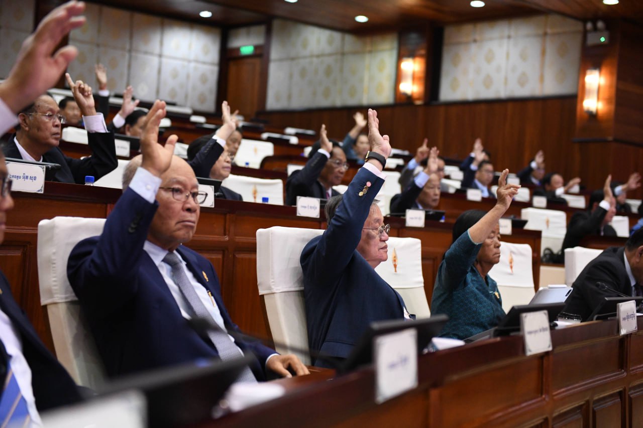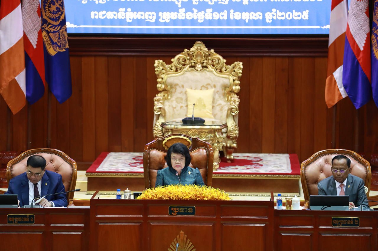 ( ភ្នំពេញ) សម្ដេចមហារដ្ឋសភាធិការធិបតី ឃួន សុដារី ប្រធានរដ្ឋសភា នៃព្រះរាជាណាចក្រកម្ពុជា អញ្ជើញជាអធិបតី សម័យប្រជុំរដ្ឋសភាជាវិសាមញ្ញ នីតិកាទី៧ ដែលមានវត្តមានសមាជិក សមាជិកា ចំនួន ១០៥រូប នៅវិមានរដ្ឋសភា រាជធានីភ្នំពេញ នាថ្ងៃទី១៧ ខែតុលា ឆ្នាំ២០២៥ ដើម្បីពិនិត្យ និងអនុម័តលើសំណើរបស់រាជរដ្ឋាភិបាល លើសេចក្តីព្រាងច្បាប់ចំនួន ៥។