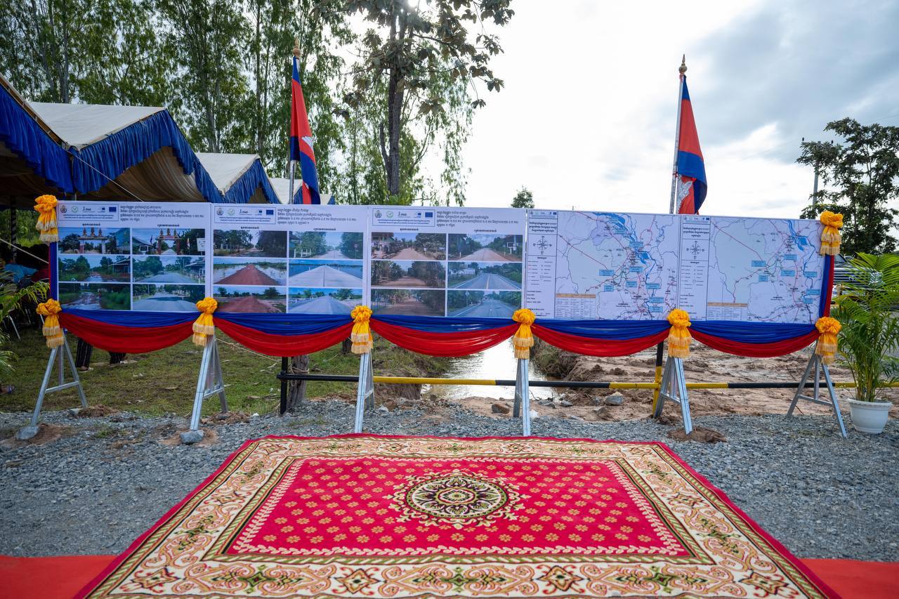 កំពង់ឆ្នាំង៖ នៅព្រឹកថ្ងៃទី១៧ ខែតុលា ឆ្នាំ២០២៥ ឯកឧត្តមបណ្ឌិត ជ្រុន ថេរ៉ាវ៉ាត ទីប្រឹក្សាផ្ទាល់សម្ដេចមហាវបរធិបតី នាយករដ្ឋមន្ត្រី និងរដ្ឋលេខាធិការក្រសួងអភិវឌ្ឍនជនបទ បានអញ្ជើញចូលរួមក្នុងពីធីបើកការដ្ឋានសាងសង់ផ្លូវជនបទដោយក្រាលកៅស៊ូពីរជាន់ (DBST) និងក្រាលបេតុង សរុបចំនួន ៦ខ្សែ ប្រវែងសរុប ៤០,៥០គ.ម. ស្ថិតនៅក្នុងស្រុកទឹកផុស និងស្រុកកំពង់ត្រឡាច ខេត្តកំពង់ឆ្នាំង ដើម្បីលើកកម្ពស់សេដ្ឋកិច្ចនៅតំបន់ជនបទ។