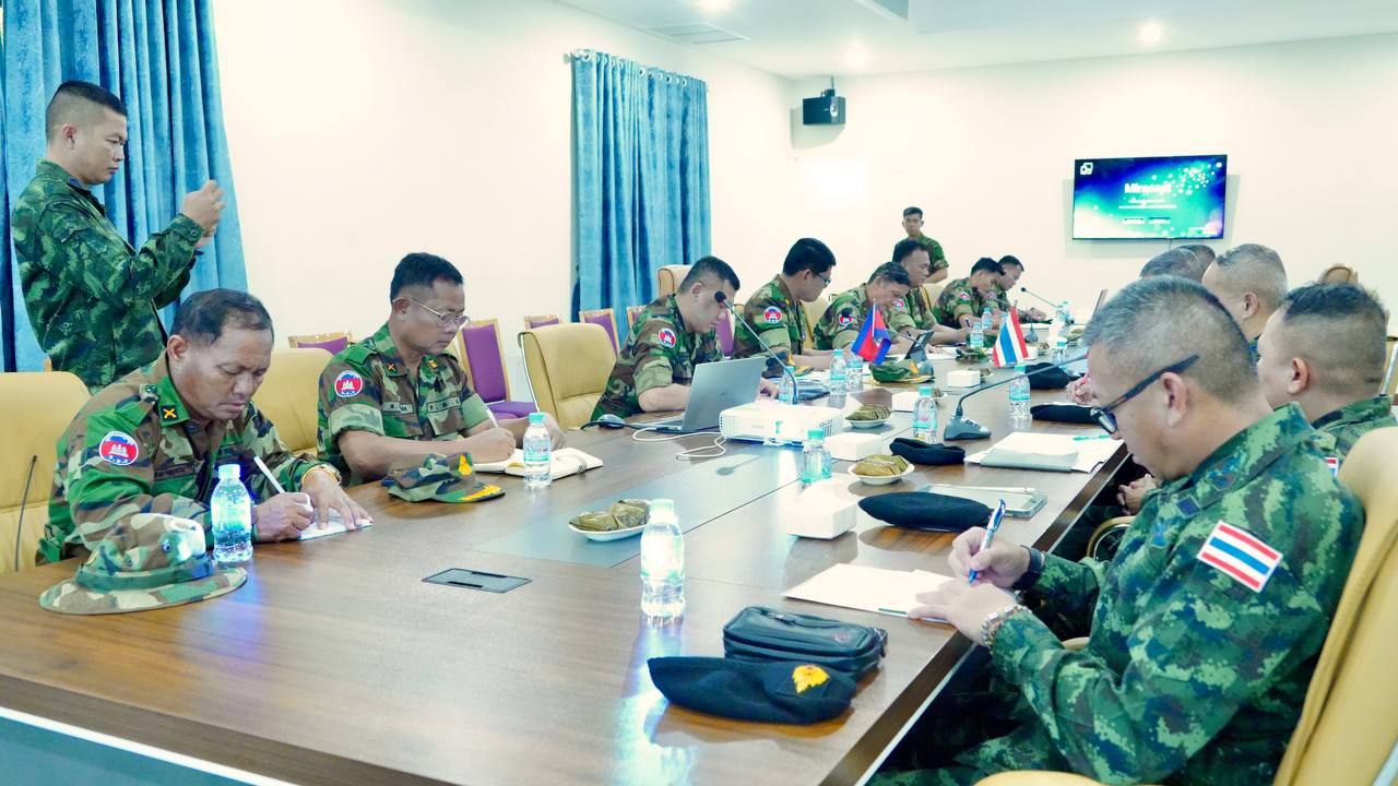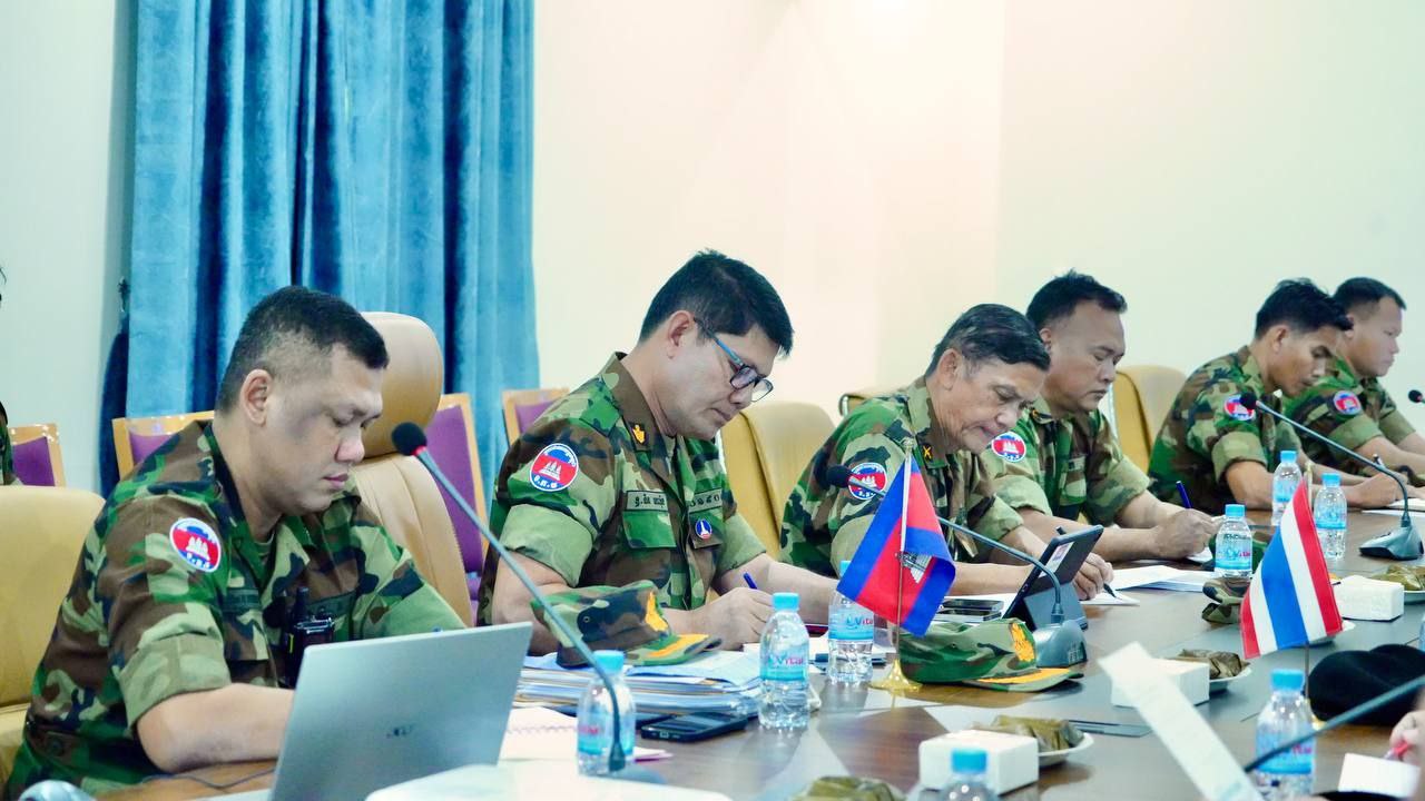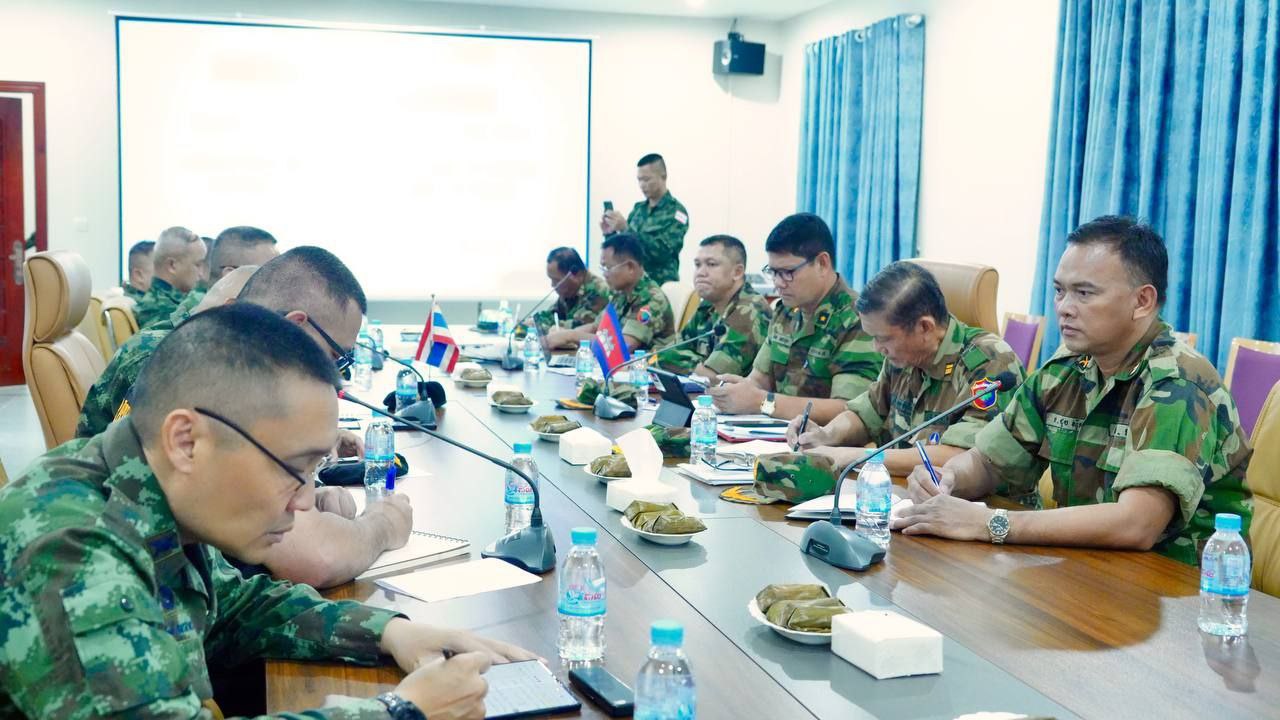 ក្រសួងការពារជាតិ នៃព្រះរាជាណាចក្រកម្ពុជា សូមជម្រាបជូនសាធារណជន អ្នកសារព័ត៌មានជាតិ និងអន្តរជាតិមេត្តាជ្រាបថា៖ តបតាមការអញ្ជើញរបស់ប្រធានក្រុមលេខាធិការដ្ឋាន នៃគណៈកម្មាធិការព្រំដែនថ្នាក់យោធភូមិភាគ កម្ពុជា-ថៃ (RBC) កងទ័ពភូមិភាគទី២ថៃ នៅព្រឹកថ្ងៃទី១៧ ខែតុលា ឆ្នាំ២០២៥នេះ ប្រធានក្រុមលេខាធិការដ្ឋាន នៃគណៈកម្មាធិការព្រំដែនថ្នាក់យោធភូមិភាគ កម្ពុជា-ថៃ (RBC) នៃយោធភូមិភាគទី៤ កម្ពុជា បានជួបពិភាក្សាការងារជាមួយអនុប្រធានក្រុមលេខា នៃគណៈកម្មាធិការព្រំដែនថ្នាក់យោធភូមិភាគ កម្ពុជា-ថៃ (RBC) កងទ័ពភូមិភាគទី២ ថៃ នៅច្រកទ្វារព្រំដែនអន្តរជាតិអូរស្មាច់។ ប្រតិភូកម្ពុជាដឹកនាំដោយ ឧត្តមសេនីយ៍ត្រី និត ណារ៉ុង នាយសេនាធិការរង យោធភូមិភាគទី៤ និងជាប្រធានក្រុមលេខានិងប្រតិភូភាគីថៃដឹកនាំដោយ វរសេនីយ៍ឯក យុត្ថាសាត សេតថាឆៃ នាយរងសេនាធិការ កងទ័ពភូមិភាគទី២ និងជាអនុប្រធានក្រុមលេខាធិការ។