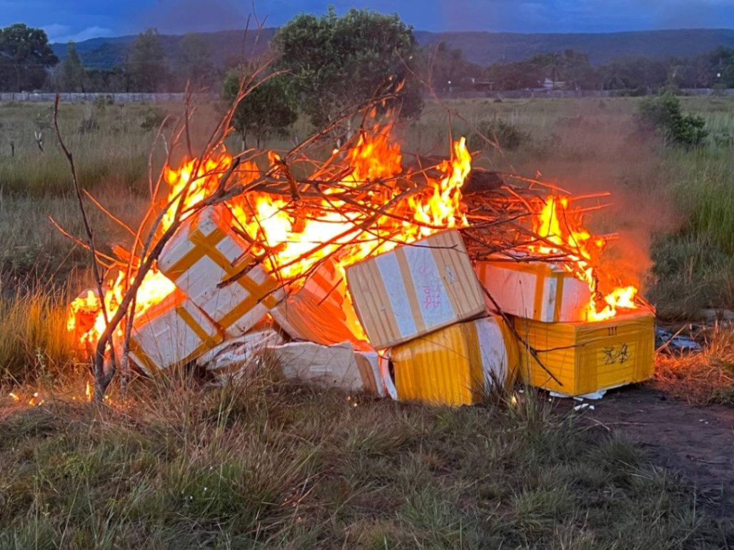 ក្រៅពីសាច់បង្កកដែលបានដុតកម្ទេចចោលខាងលើនេះ ក្នុងនោះក៏មាន ក្ដាមសករស់ជាច្រើនកេស ត្រូវបានលែងនៅ ពាមក្រសោម និងមានទំនិញស្ងួតដូចជា កាហ្វេ ថ្នាំលាបផ្ទះ ទឹកអាស៊ីត ត្រូវបានរក្សាទុកនៅស្នងការ។