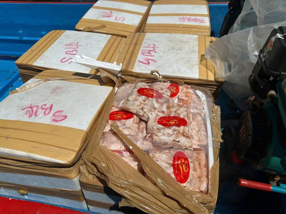 សាច់បង្កក ដូចជា ជង្គង់មាន់ ស្លាបមាន់ ក្ដាម ជិត ១តោន ទើបត្រូវបានដុតកម្ទេចចោលមុននេះ ដោយកាលពីម៉ោង ៣ ទាបភ្លឺ នៅថ្ងៃទី១៧ ខែតុលា ឆ្នាំ២០២៥ កម្លាំងនរគបាលប៉ុស្ត ការពារ ព្រែកកោះយ៉ នៃវរ:នគបាលការពារព្រំដែនជើងទឹកលេខ២៦៩ ខេត្តកោះកុង បានឃាត់ទូកដឹកសាច់បង្កកពីថៃ តាមផ្លូវទឹកចូលខេត្តកោះកុង រឹបអូសបានសាច់បង្កកជាច្រើនប្រភេទ ព្រមទាំងឃាត់ខ្លួនមនុស្សបាន ៣នាក់។