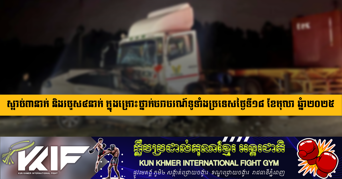 ស្លាប់៣នាក់ និងរបួស៤នាក់ ក្នុងគ្រោះថ្នាក់ចរាចរណ៍ទូទាំងប្រទេសថ្ងៃទី១៨ ខែតុលា ឆ្នំា២០២៥