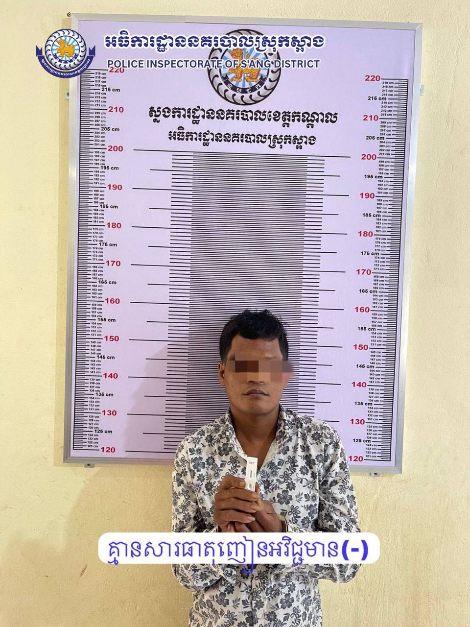 ជនសង្ស័យចំនួន០១នាក់ ឈ្មោះ រិន ទិព្វ ភេទប្រុស អាយុ ៣៦ឆ្នាំ ជនជាតិខ្មែរ កម្មករ មានទីលំនៅភូមិលេខ៤ ឃុំប្រាសាទ ស្រុកស្អាង ខេត្តកណ្តាល។(ឃាត់ខ្លួន) គ្មានសារធាតុញៀនវិជ្ជមាន(-)