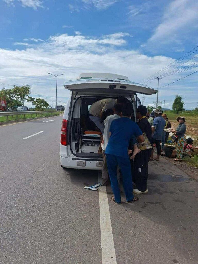 សាក្សីដដែលបានប្រាប់ថា ពេលធ្វើដល់ចំណុចគ្រោះ ថ្នាក់ ស្រាប់តែជ្រុលទៅបុករបាំងពុះចែកផ្លូវពេញទំហឹង ហើយហើយរេចង្កូតក្រឡាប់ធ្លាក់ចូលស្រែតែម្ដង។ អ្នកជួយសង្គ្រោះបានបញ្ជាក់ថា រថយន្តបានក្រឡាប់ចាក់បាវស្រូវពេញស្រែ លាយឡំជាមួយអ្នកជិះ។ អ្នករួមដំណើរខ្លះត្រូវបាវស្រូវសង្កត់ជាប់ តែអកុសលមានបុរសម្នាក់ បានស្លាប់ដោយបាវស្រូវសង្កត់លើរើមិនរួច។