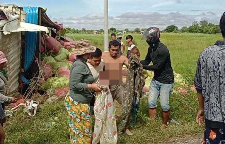 រថយន្តដឹកស្រូវបុករបាំងចែកផ្លូវ បណ្តាលឱ្យក្រឡាប់ស្លាប់ម្នាក់ របួសធ្ងន់ស្រាល៨នាក់