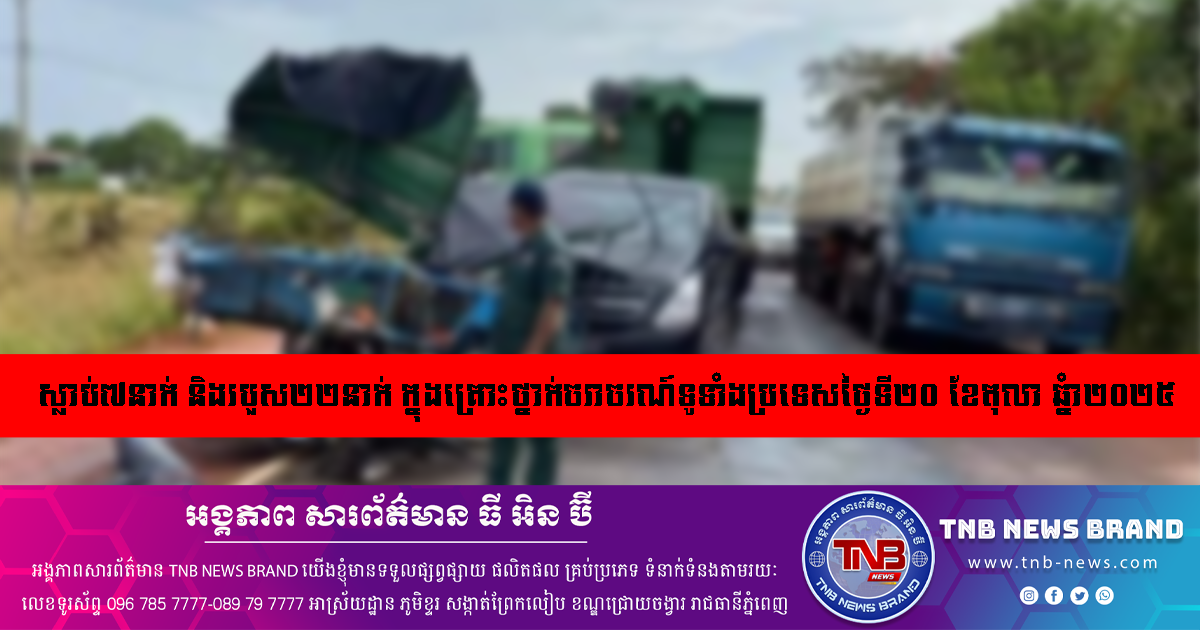 ស្លាប់៧នាក់ និងរបួស២២នាក់ ក្នុងគ្រោះថ្នាក់ចរាចរណ៍ទូទាំងប្រទេសថ្ងៃទី២០ ខែតុលា ឆ្នំា២០២៥
