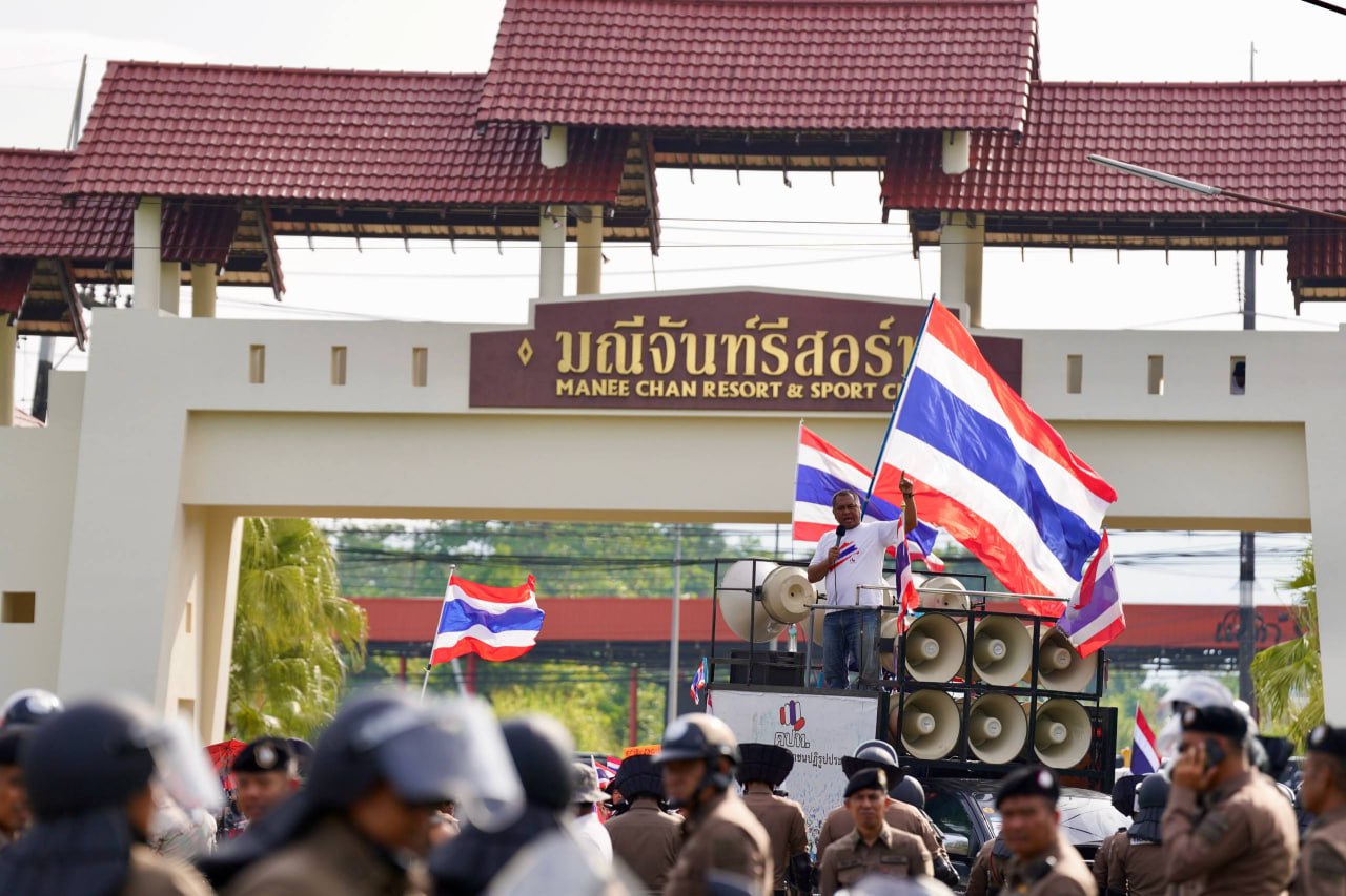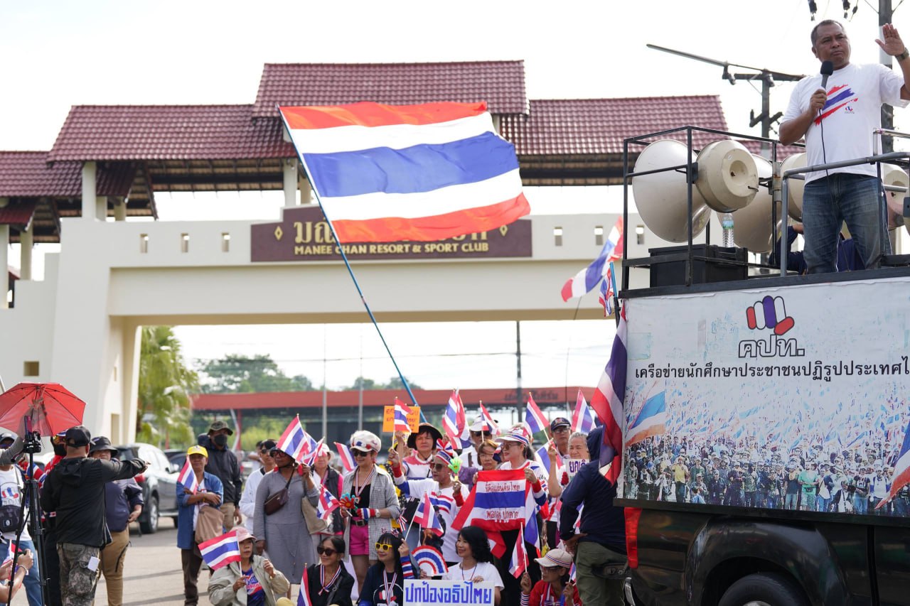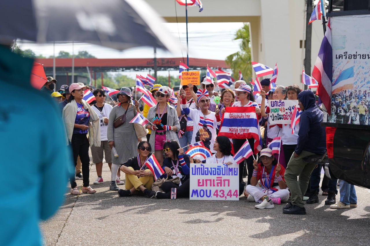 ពលរដ្ឋថៃ ប្រមាណ ២០នាក់ នាំគ្នាស្រែកតវ៉ាប្រឆាំងកិច្ចប្រជុំ JBC នៅខេត្តចន្ទបុរី ប្រទេសថៃ