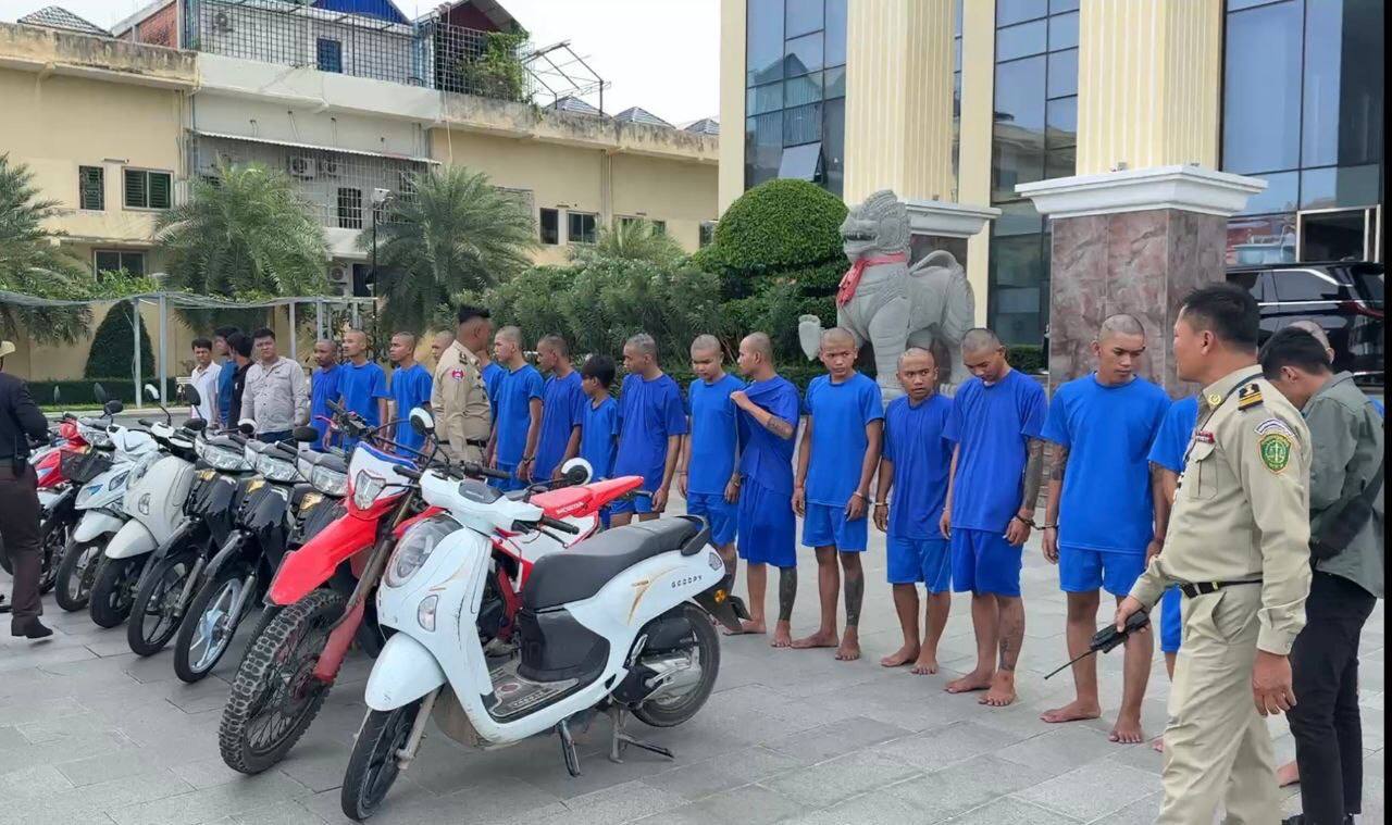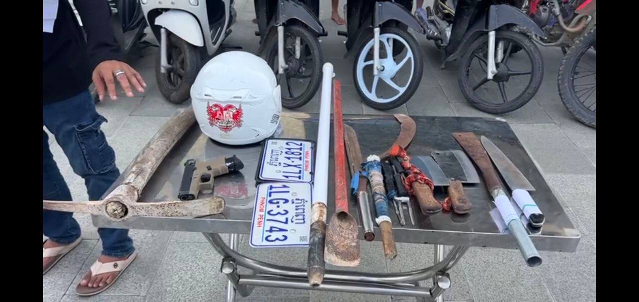 ក្នុងនោះដកហូតវត្ថុតាងរួមមាន ចបជីក , ដងឆ័ត្រ , ត្រសេះ , កាំបិតផ្គាក់ , កាំបិតបុ័ងតោ , ដាវសាំម៉រ៉ៃ , កាំបិតចុងស្រួច , កាំភ្លើងហ្គាស ( ប្រើគ្រាប់កង់ ) , មួកសុវត្ថិភាព , ស្លាកលេខចំនួន ២ នឹងម៉ូតូចំនួន ១០គ្រឿង ៕